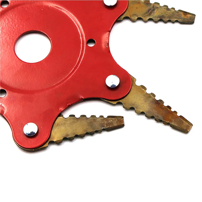 Материал: марганцевая сталь Мощная Головка триммера для травы, Легкая резка для кустореза, 1.Двусторонняя режущая кромка-360 ° без резки мертвого угла 2. Лезвие свободно выдвигается в чехол сопротивления типа камней. 3. Более равномерная резка-Более Тщательная ПрополкаГоловка триммера изготовлена из высококачественного металлического материала, прочная и долговечная, обеспечивающая долгий срок службы.