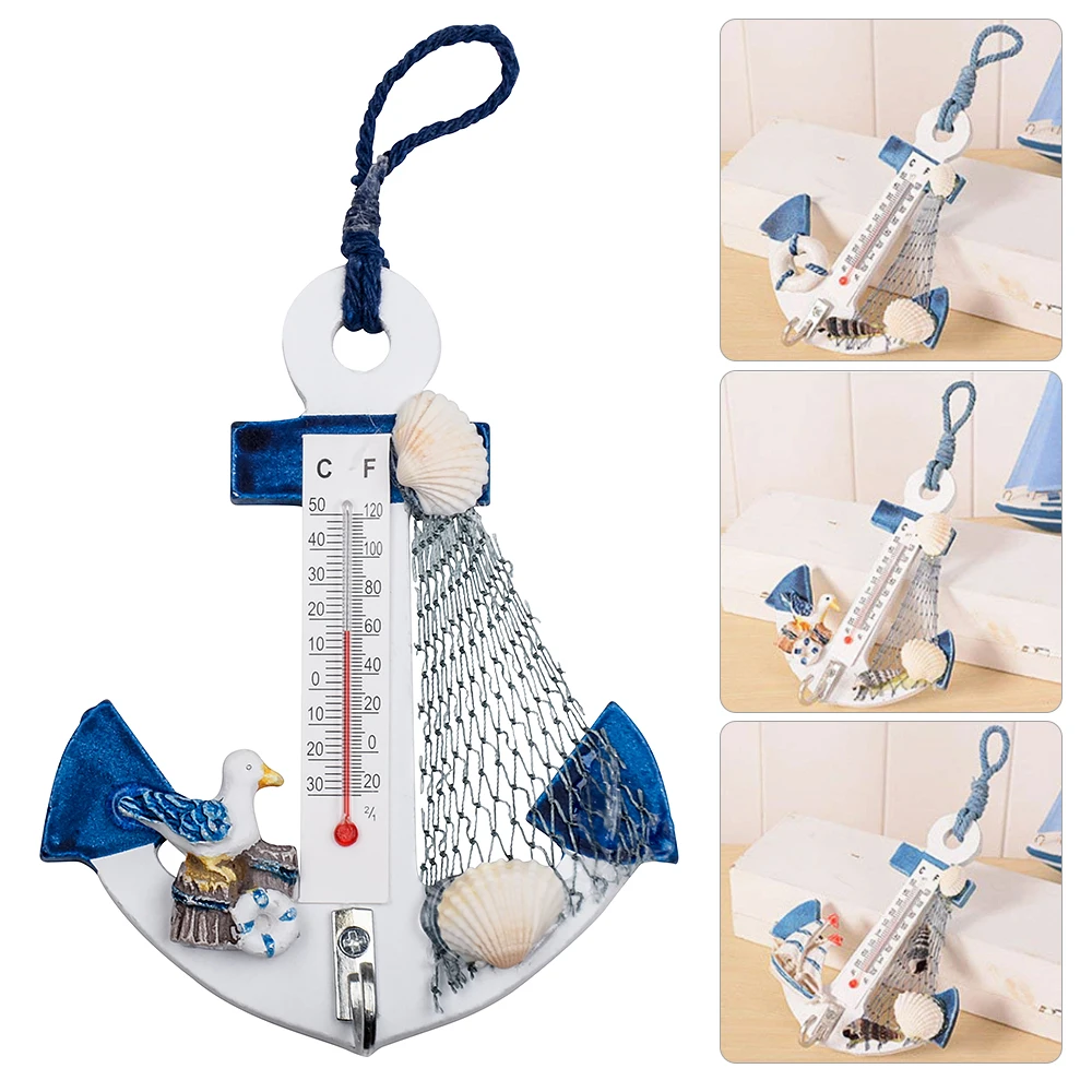 Деревянный термометр в виде якоря ремесла искусство настенный крючок ракушка Морской Декор винтажное украшение для дома креативные поделки подарок
