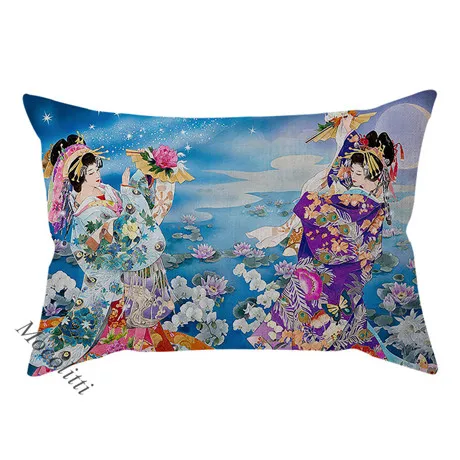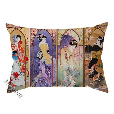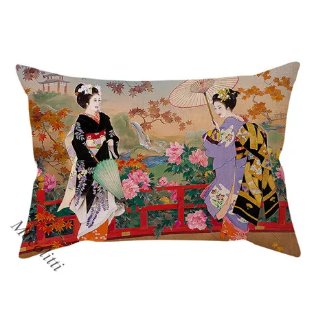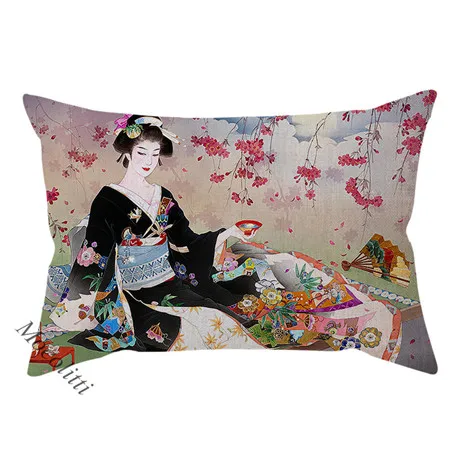 Красивая японская Этническая традиция, Женский Чехол Подушка с портретном, винтажный акварельный художественный декор, наволочка для дивана, наволочка Cojines