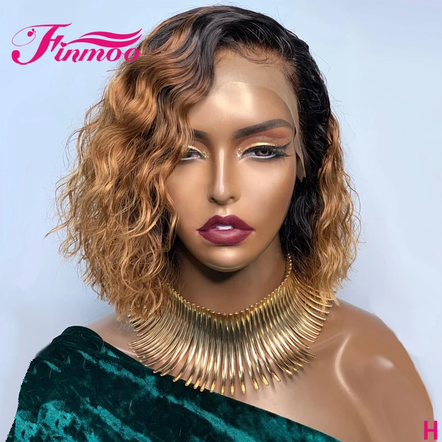 Парик с кудрявым Бобом 13х6 медовый блонд парики с фронтальным кружевом Омбре парик из человеческих волос для женщин боб парик 360 кружевной передний парик al парик перуанский Remy 150%