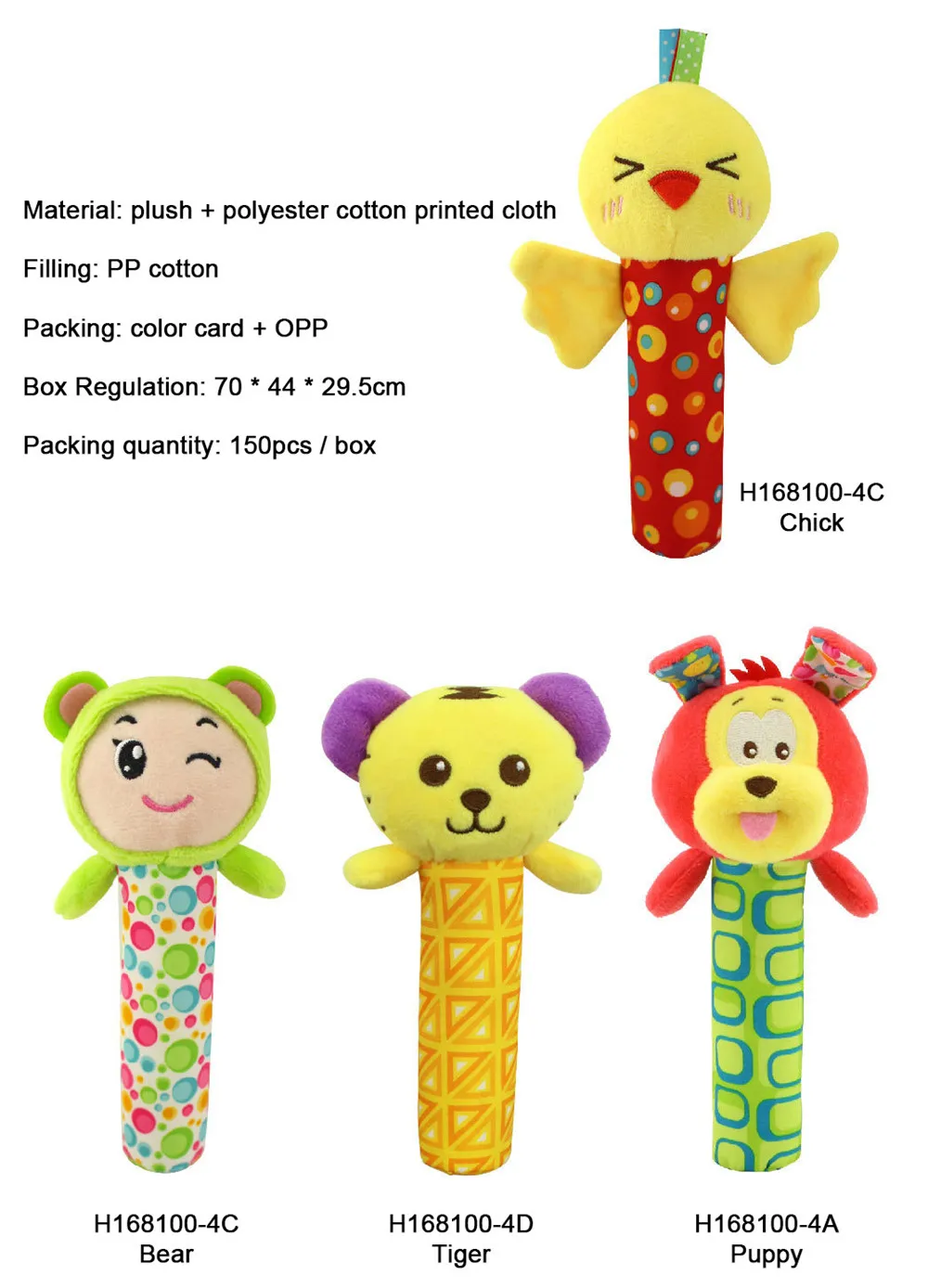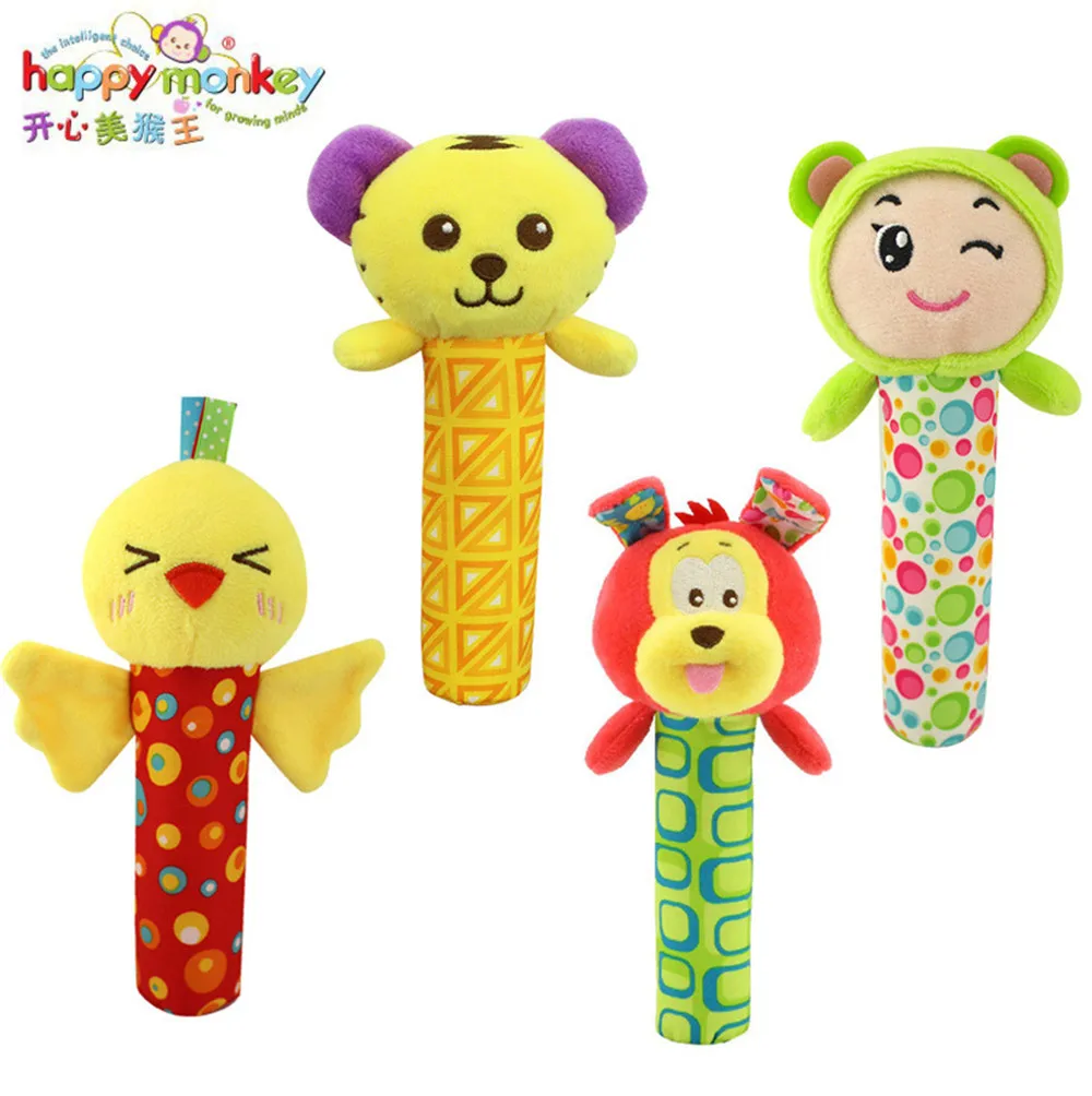 Детские игрушки от 0 до 12 месяцев колокольчик с мультяшным животным bb палка для новорожденных мягкие милые животные куклы колокольчикиХватательные игрушки