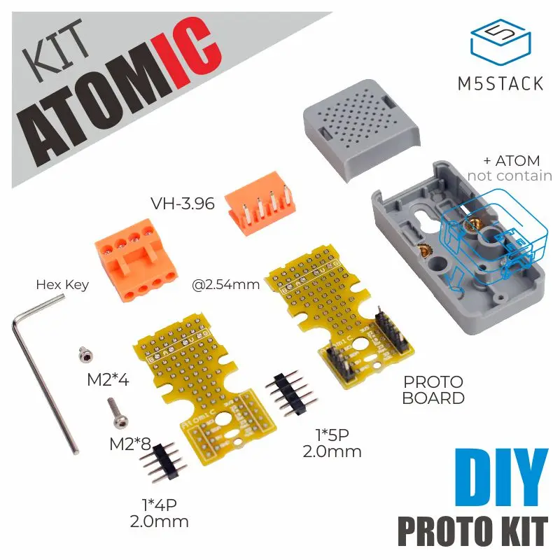 • 1x прототип доска * 1x Доска Прото (припаянный штифт/готовый продукт) * 1x4P VH-3.96 штепсельная вилка и штепсельная вилка * 1x4P 2,0 булавки * 1x5P 2,0 булавки • 1x атомно-Чехол * 1x M2 * 3 мм саморезы * 1 винт M2 * 8 мм