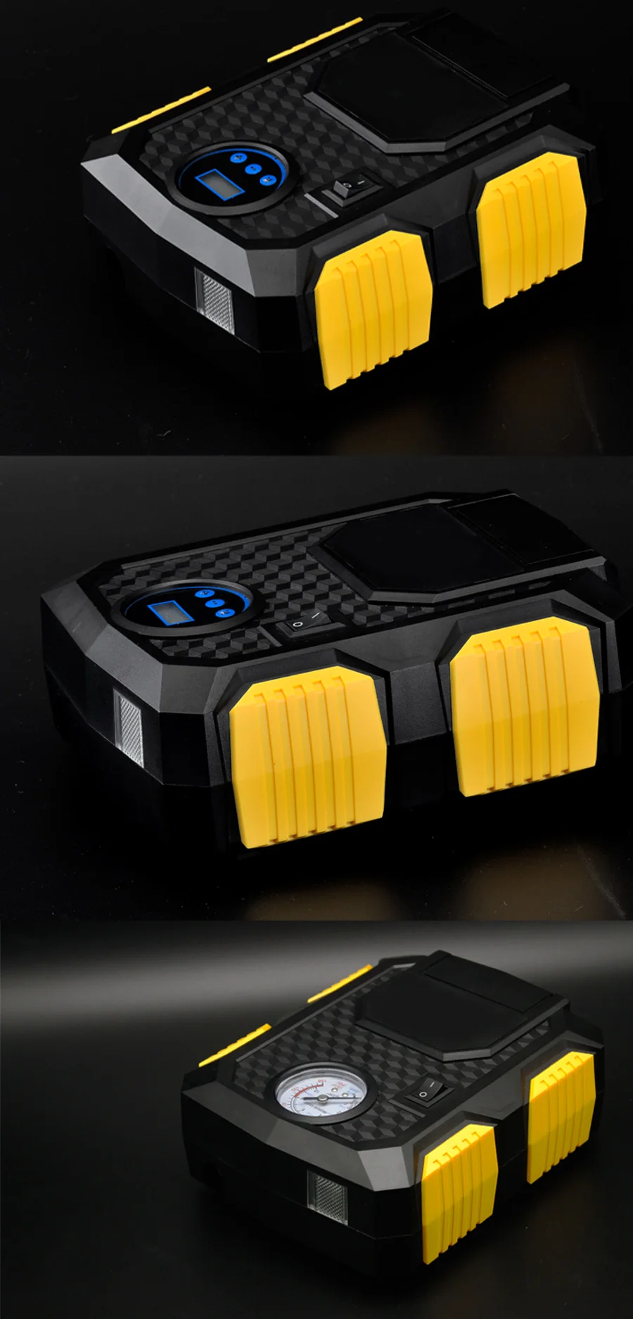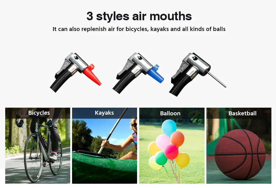1. Этот воздушный компрессор позволяет надуть стандартную автомобильную шину среднего размера от 0 ~ 36PSI (0-248KPA) всего за 4-6 минут. 2. Это делает надувание низких и плоских шин в аварийной ситуации проще и удобнее. Манометр дисплей блока воздушного компрессора: PSI, бар, кПа, кгс/см2. 3. До 3 метров 12 В автомобильного шнура питания, может эффективно обеспечить работу радиуса продукта, нажмите кнопку, чтобы немедленно зарядить без затяжки. 4. Встроенный разъем для хранения кабеля и разъем для хранения шлангов, не нужно беспокоиться, что шнур слишком длинный, чтобы положить, более удобный в использовании. 5. Со встроенным светодиодный светильник, вы не будете иметь проблем с видением того, что вы делаете с шиной, даже когда вы работаете в темном гараже, припаркован под сломанный уличный светильник, или сломался рядом с неосвещенной сельской дорогой. 6. Отлично подходит для многих типов шин: автомобилей, велосипедов, мотоциклов, RV, SUV, ATV, резиновых кораблей, а также спортивного оборудования и надувных изделий. Три дополнительных насадки и адаптеры, которые входят в комплект, делают компрессор универсальным и более широко используемым.
