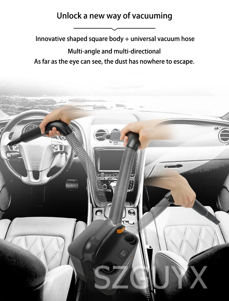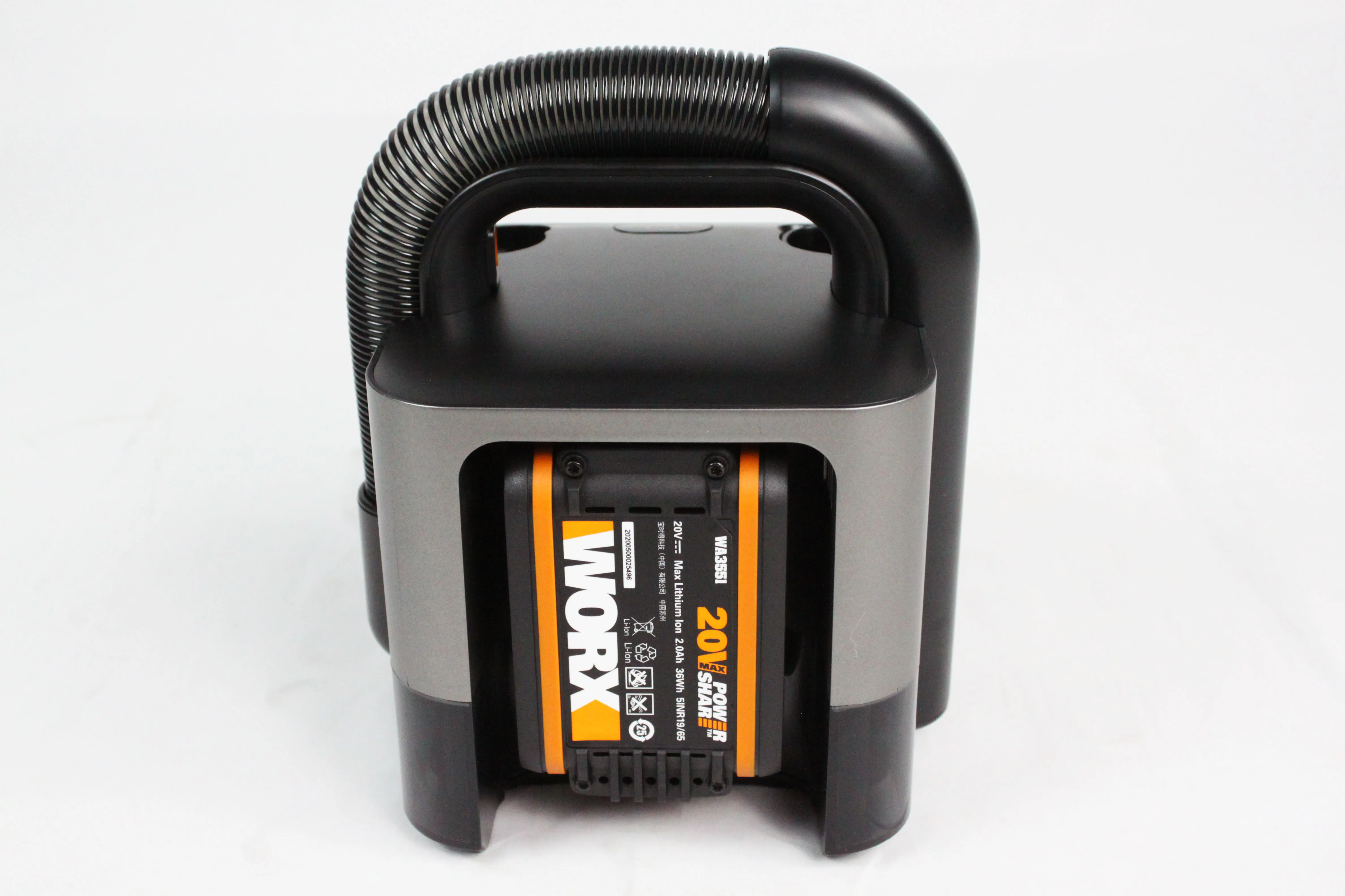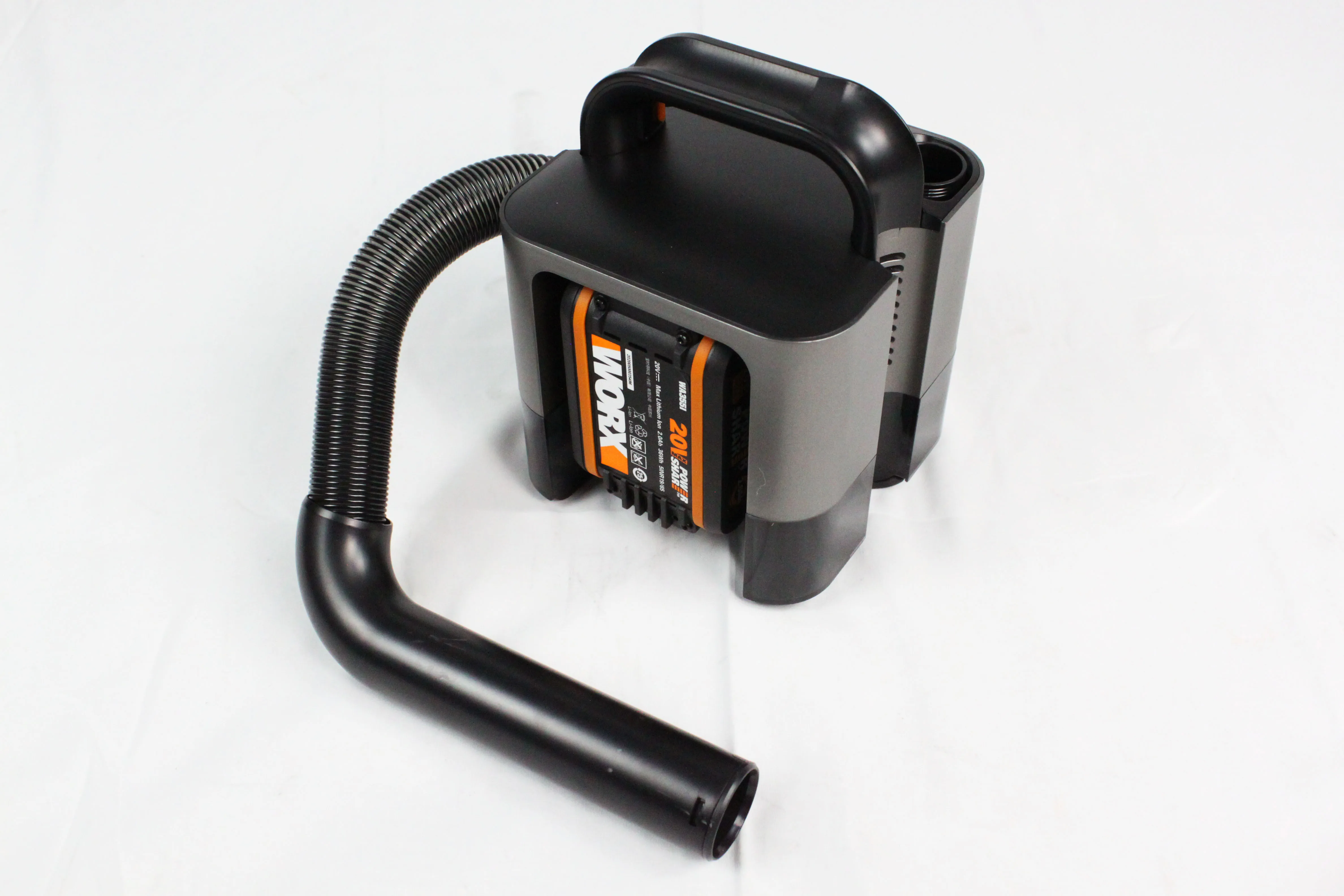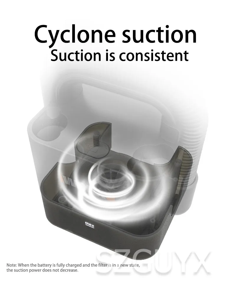 Product model: wx030 Machine weight: 1.8KG Battery capacity: 2.0ah Vacuum hose length: 1.2M Nozzle type: long flat nozzle, brush nozzle Rated voltage: 20 volts Rated power: 180W Maximum suction: 10 kPa Suction gear: 2 gears Life time: 20 minutes in standard gear, 10 minutes in high gear Battery charging time: 1 hour Hose outer diameter: 32MM Hose expansion ratio: 1: 4 Dust collection capacity: 0.2 liters Inlet air filtration: cyclone airflow + metal filter + HEPA Outlet filter: sponge Size: 150 * 182 * 218mm