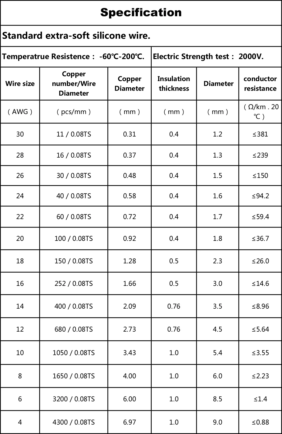 Материал: луженая проводящая медь Изолятор: силикон Спецификация: 6AWG/8AWG/10AWG/ 12AWG/ 14AWG/16AWG/ 18AWG/20AWG/22AWG/28AWG Цвет: черный и красный Общая длина: 2 м (1 м красный + 1 м черный) Примечание: 2 м/лот означает 1 м красный + 1 м черный. Например: вы покупаете 2 партии, мы отправим вам 2 м красный провод и 2 м черный провод.