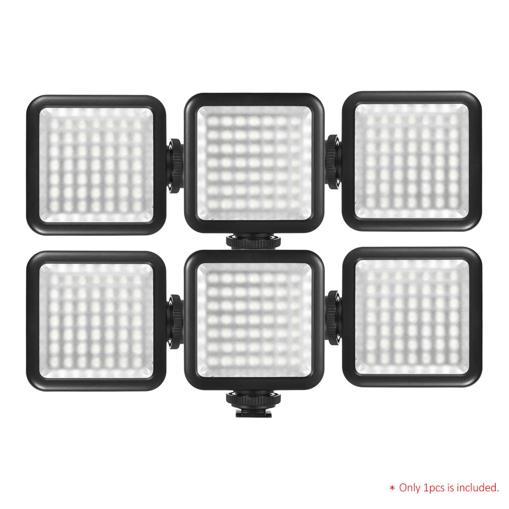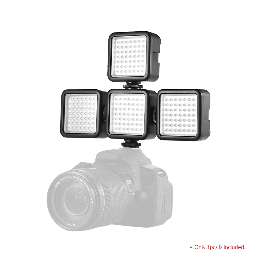 Мини-светодиодная лампа Andoer W49 выдает максимум. 5,5 W мягкий белый свет для профессиональной фотографии, например, для свадьбы, портретного изображения продукта и т. д. Свет имеет 3 основания Горячий башмак для блокировки нескольких огней вместе для лучшего эффекта освещения. 0 - 100% Яркость затемнения.