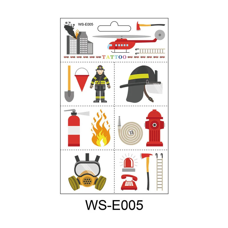 10 шт./компл. пожарный грузовик тату наклейки пожарный Огнетушитель Временные татуировки пожарный отдел украшение для вечеринки
