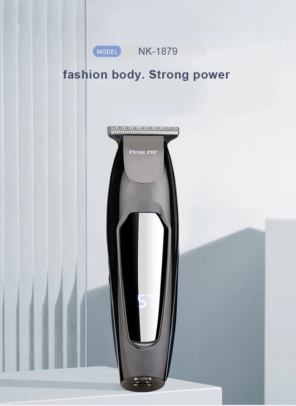 Название продукта: цифровая ЖК-машинка для стрижки волос Модель товара: nk-1879 Способ зарядки: USB зарядка, Напряжение питания: 100-240 В Универсальное напряжение Мощность изделия: 3 Вт Характеристики упаковки: Английская цветная коробка упаковка: 18,5*8,3*5,7 см Вес изделия: 0,307 кг