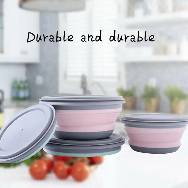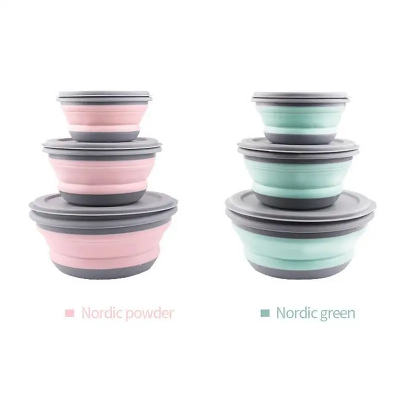 3 шт., походная портативная силиконовая складная чаша для пикника, набор посуды для пикника, компрессионные чаши, чашка для воды, детская коробка для обеда, кухонные блюда, тарелки, столовая посуда, посуда, кухонные принадлежности
