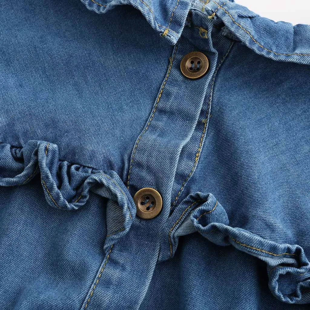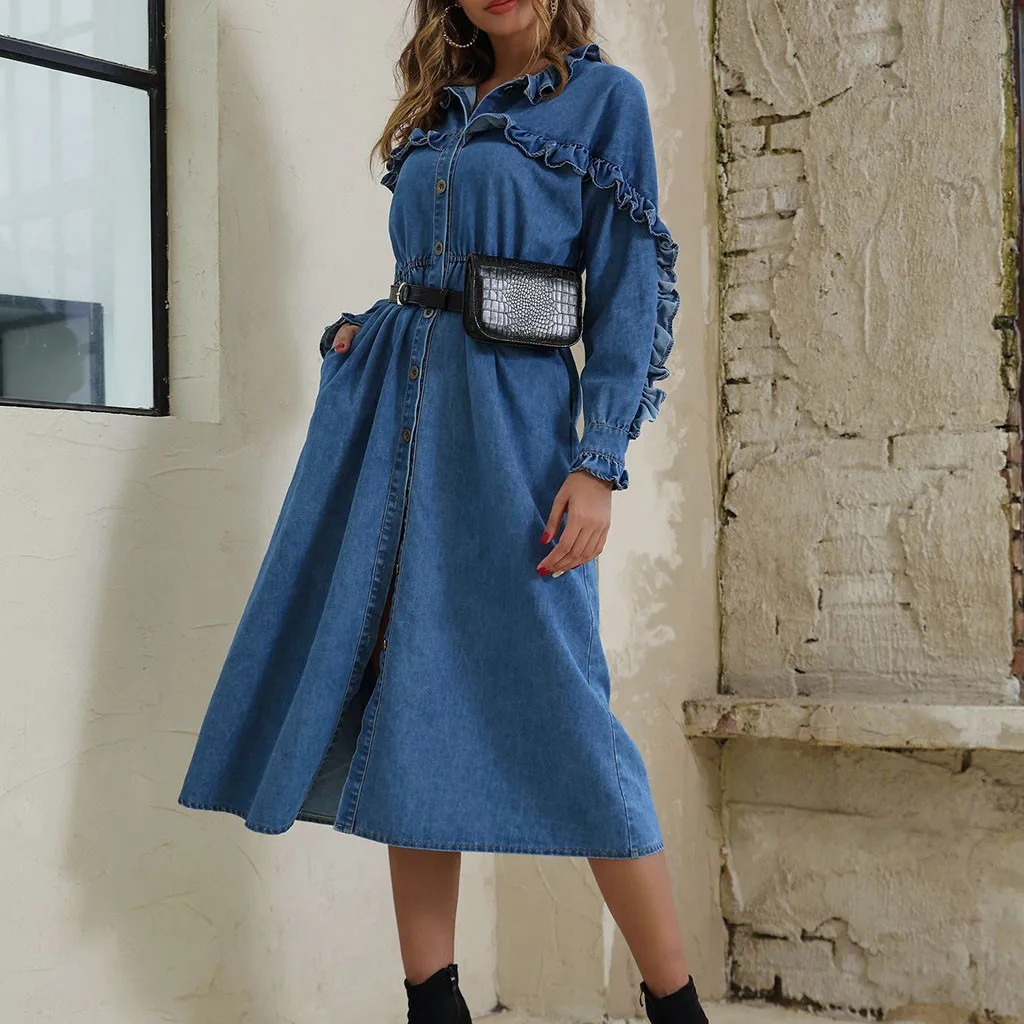 Женское джинсовое платье на шнуровке, с оборками и длинными рукавами, длинное платье