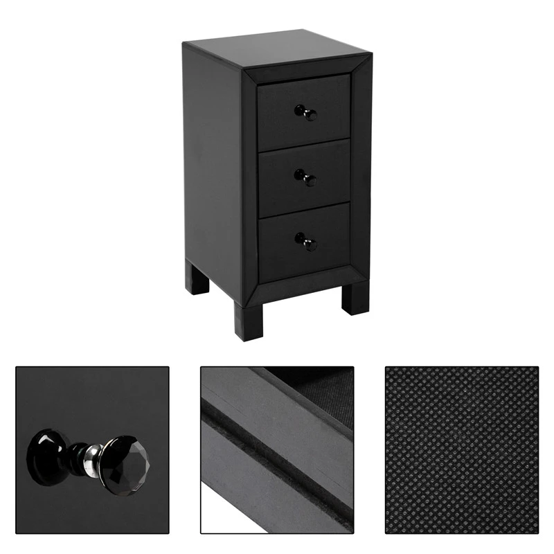 Эта уникальная прикроватная тумбочка с зеркалом или прикроватным столиком с тремя ящиками обязательно добавит блеска в вашу спальню. Этот прикроватный шкаф добавит элегантности вашему boudoir с современным поворотом. Зеркальная тумбочка с 3 ящиками выполнена из гладкого и скошенного зеркального стекла. Три просторных выдвижных ящика спереди, каждая из которых оснащена милыми кристальными ручками. Они обеспечивают сдержанный вид, делая ящики доступными. Зеркальная отделка красиво притягивает светильник и создает гламурный, сверкающий вид в вашей спальне.