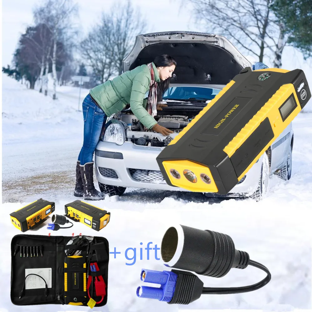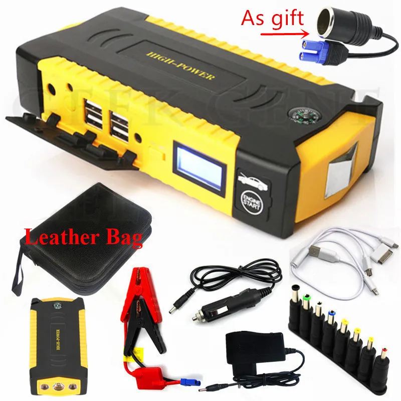 Стартер для автомобиля (внешний аккумулятор) * 2 Зажимы для аккумулятора (красный = Положительный; Черный = отрицательный) * 2 Настенное зарядное устройство * 2 Автомобильное зарядное устройство * 2 3 в 1 кабель для зарядки * 2 Разъем для ноутбука * 16 Зарядный кабель для ноутбука * 2 Инструкции на английском языке * 2 Чехол для розничного инструмента * 2 Стартер прикуривателя в подарок * 2 Соединение серии * 1