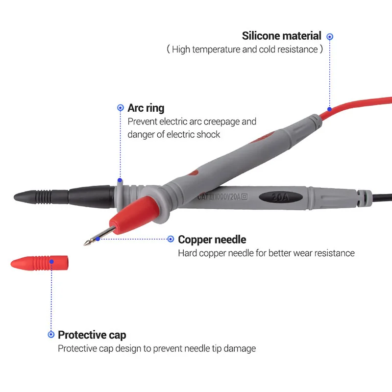 5. Игла-оболочка, многофункциональная комбинированная Изолированная проволочная ручка, чтобы избежать поражения электрическим током; Медная игла, многофункциональная комбинированная линия, более быстрое и простое измерение