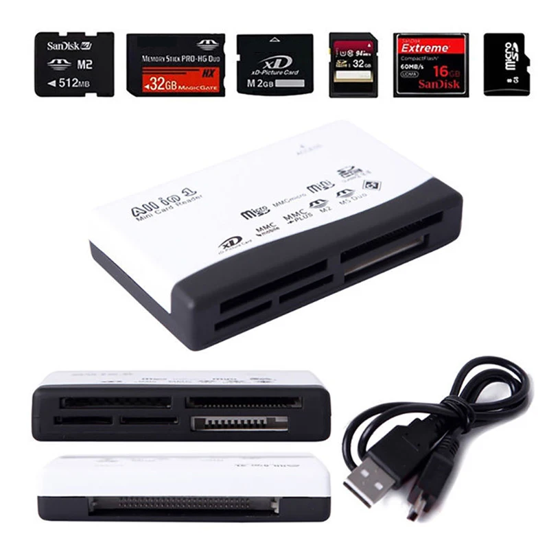 11. Все в одном устройство для чтения карт памяти USB внешний SD SDHC Mini Micro M2 MMC XD CF Поддержка USB V2.0 полная скорость Спецификация черный.