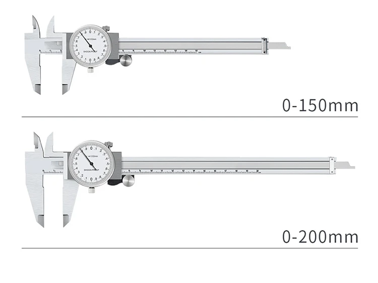 0-150/200 мм штангенциркуль с циферблатом ударопрочный 0,02 мм Особенности & Функция: Изготовлен из нержавеющей стали, не ржавеет производительность Четыре способа измерения: внутренний диаметр, наружный диаметр, глубина, шаг Индикатор двунаправленный землетрясения Металлический корпус имеет функцию предотвращения железа Поворотный циферблат ноль, затем замок Точная регулировка колеса большого пальца Технические параметры Диапазон измерения: 0-150/200 мм Разрешение: 0,02 мм Точность: ± 0,03 мм О посылка: 0-150 мм около 360 г 0-150 мм около 450 г