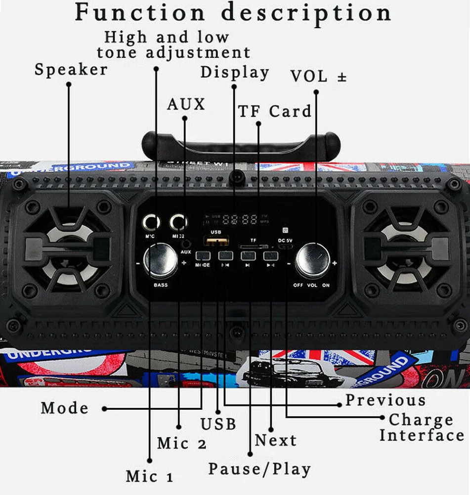 Функции: Bluetooth, кардридер TF, воспроизведение AUX, FM-радио