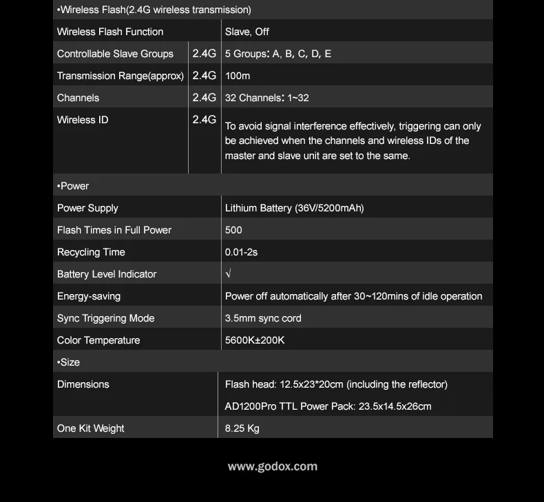 Головка вспышки: 12,5x2320 см (в том числе отражатель)