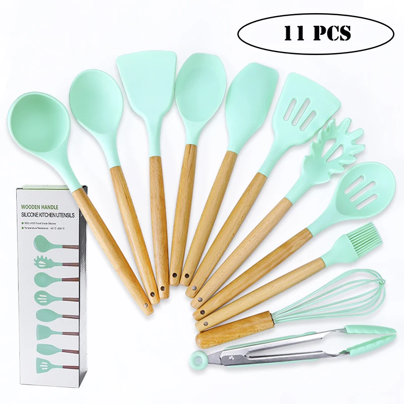 11 шт. набор силиконовых кухонных принадлежностей с держателем, приспособление для приготовления шпатель Тернер термостойкий инструмент гаджеты для антипригарной посуды