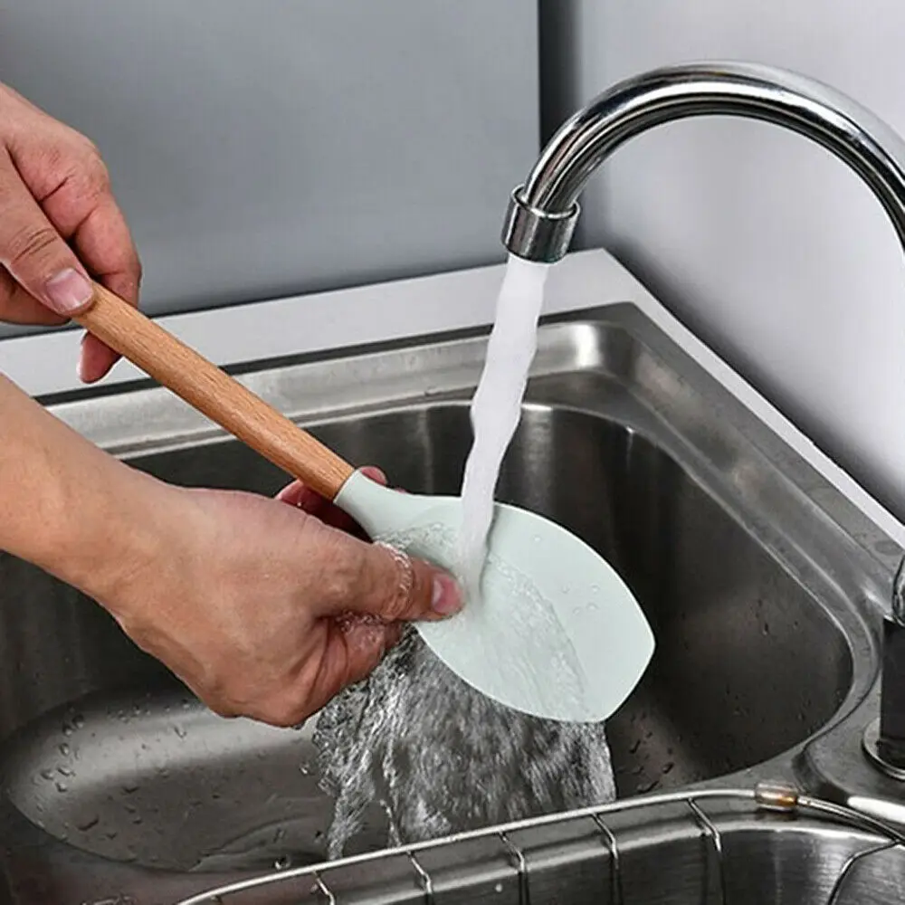 Легко использовать и моющаяся кухонная утварь устойчива к пятнам. Это из-за непористой характеристики силикона. Чтобы не сохранять запахи или цвета, когда вы используете его для перемешивания глубокой пищи, такой как продукты на основе томатов. Это также облегчает очистку или мытье силиконовых изделий.