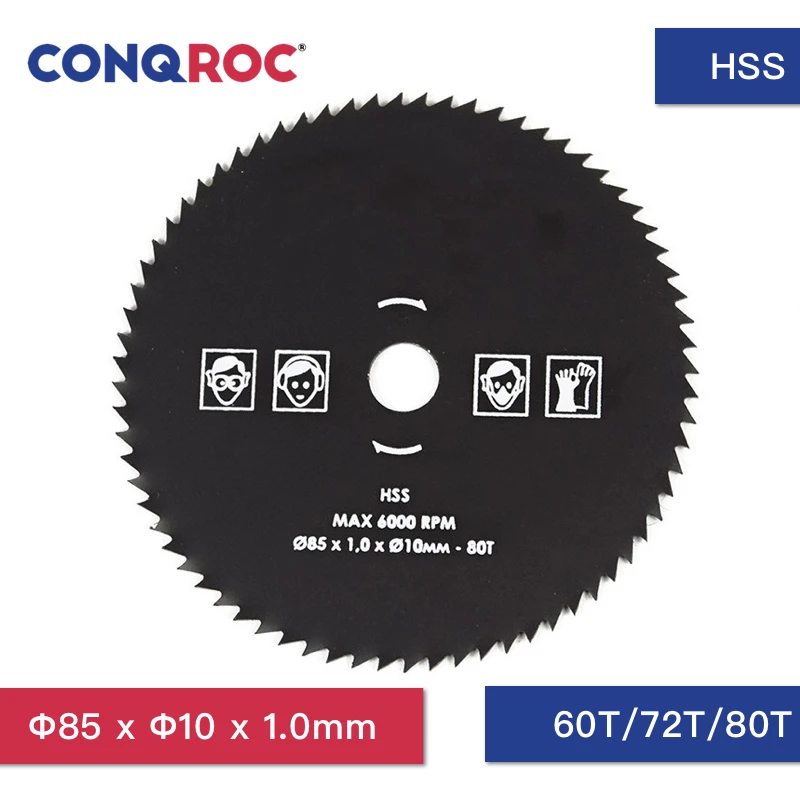 -Материал: быстрорежущая сталь; -Диаметр: 85 мм -Диаметр отверстия: 10 мм -Зубья: 60T/72T/80T -Толщина: 1 мм -Применение: используется для резки дерева, пластика, акриловой доски и т. Д.