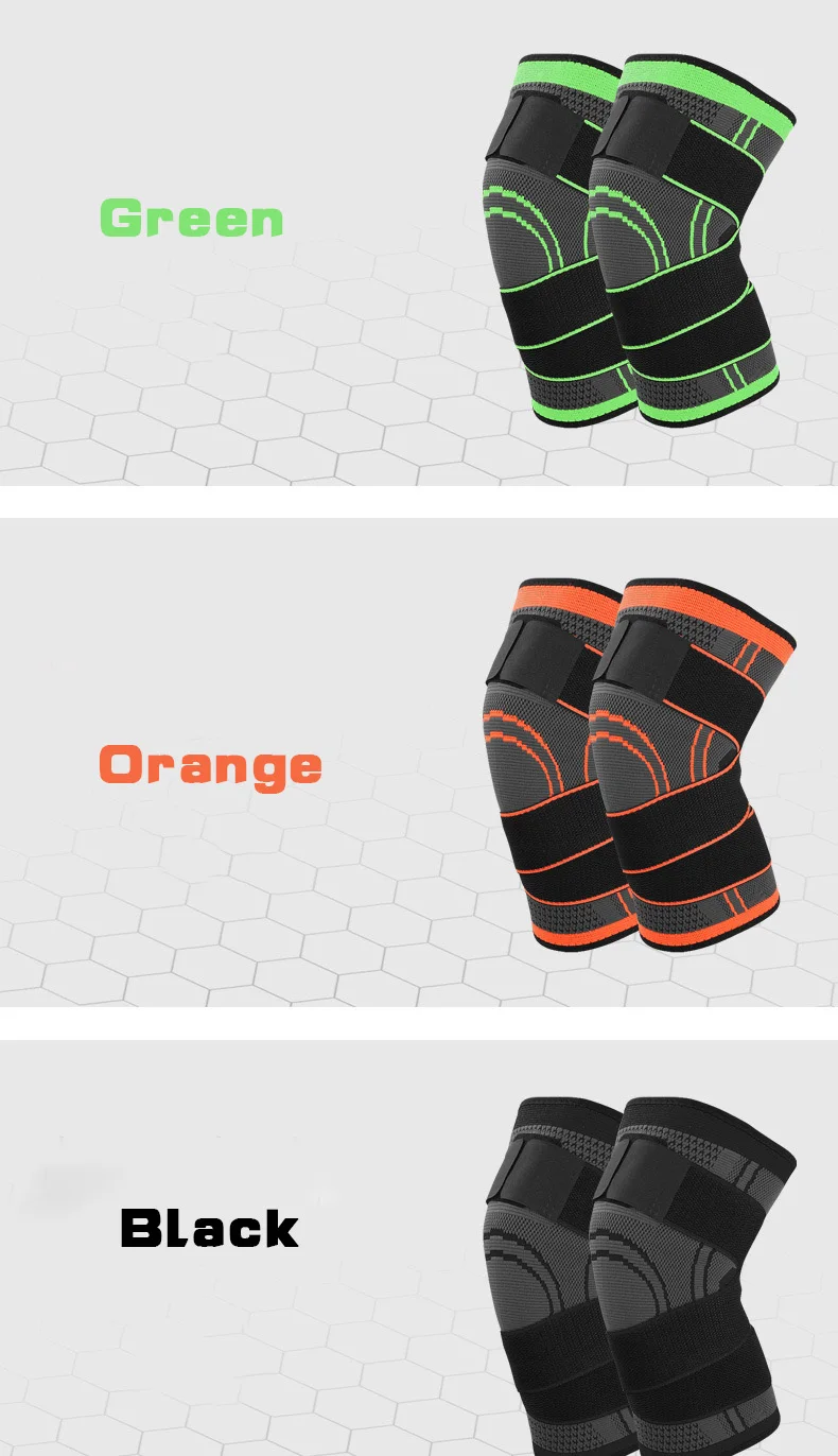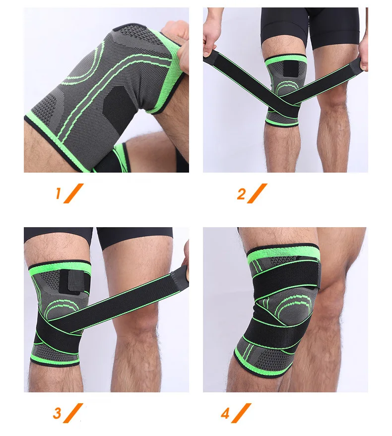 Название: сжатия наколенники Цвет: зеленый/черный/оранжевый Ткань: нейлон/спандекс/латексная пряжа Размер: S / M / L