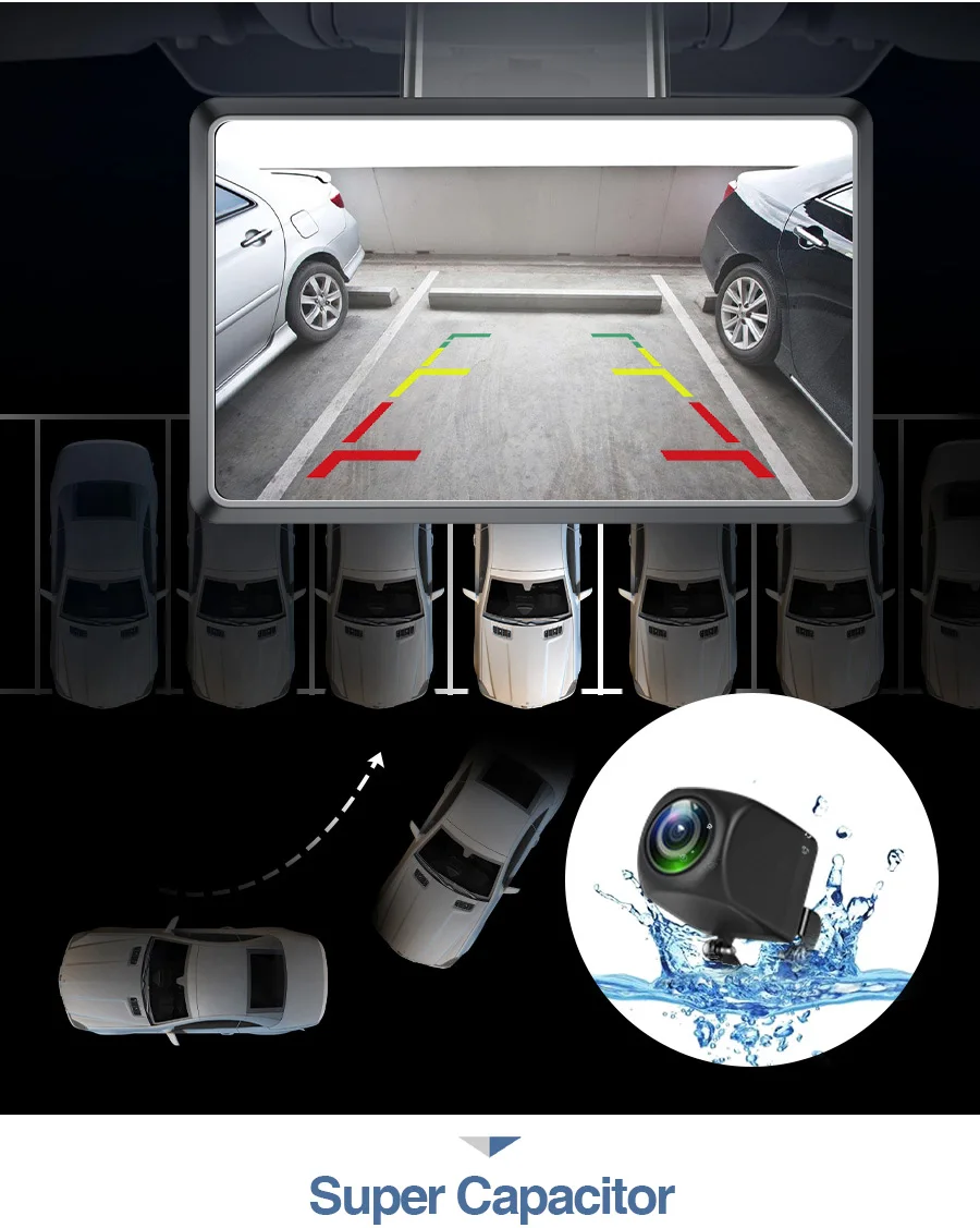 Если вы установили нашу заднюю камеру, видеорегистратор автоматически переключается для отображения изображения заднего объектива, а полный экран отображает заднюю среду, поддерживающую Реверсивный режим.