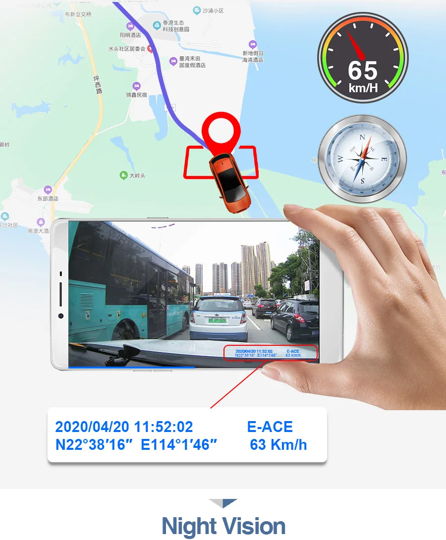 Оснащен системой позиционирования GPS, точно собирает коordi-nate и скорость вашего автомобиля. (нужно купить B05 со встроенным GPS, чтобы наслаждаться этой функцией)