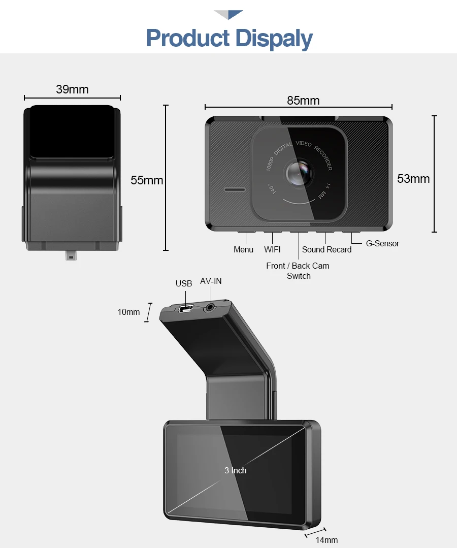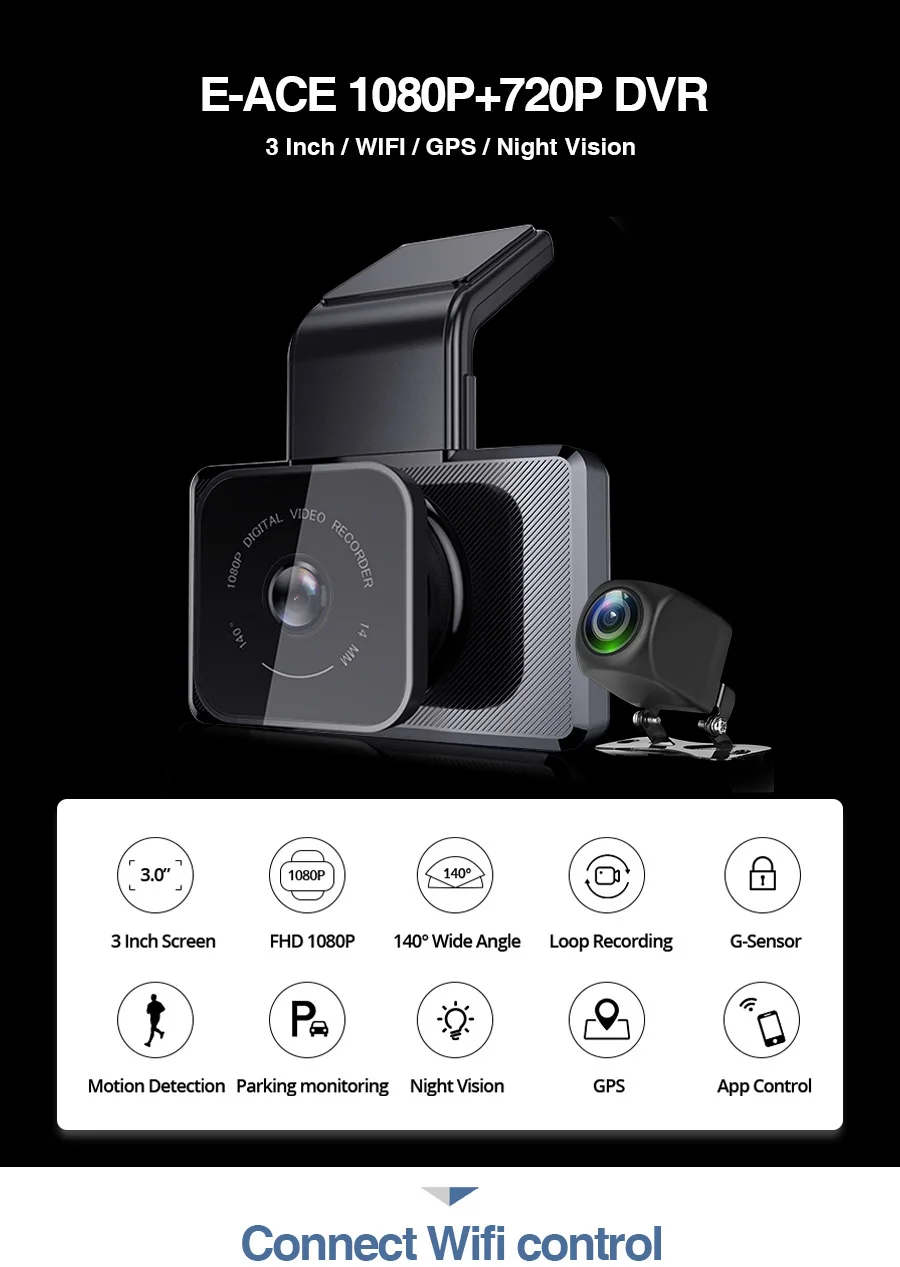 ● Разрешение видео: спереди: 1920*1080P @ 30 кадров в секунду; Сзади: 1080*720P @ 30 кадров в секунду