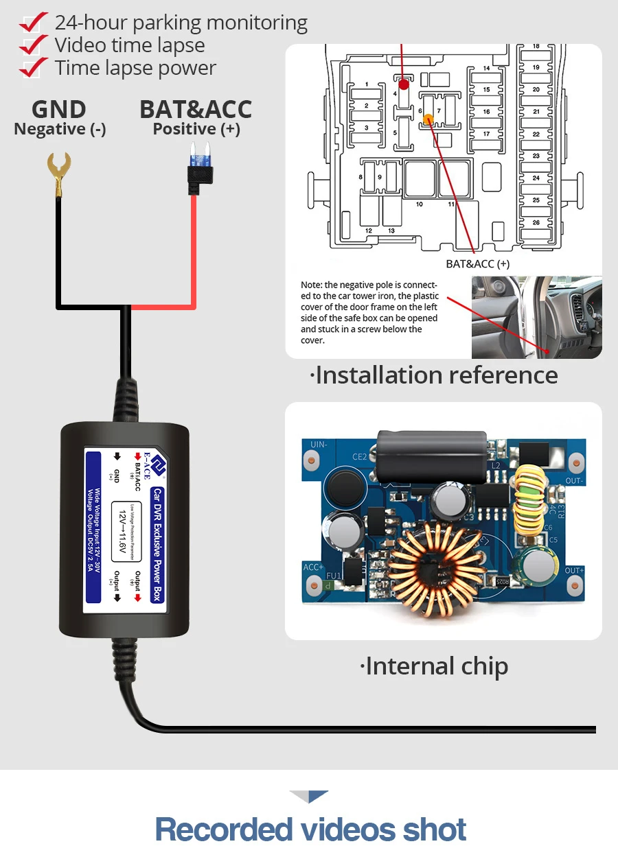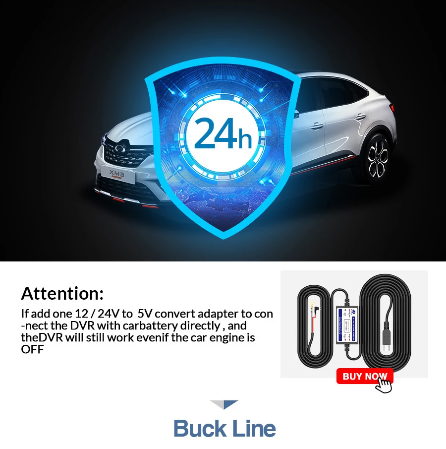 Видеорегистратор совместим только с автомобилями с источником питания 12 В. Источник питания 24 В сожжет материнскую плату. Если вы хотите использовать 24V, поэтому, пожалуйста, добавляйте еще один 24 В до 12 В конвертер (BL).