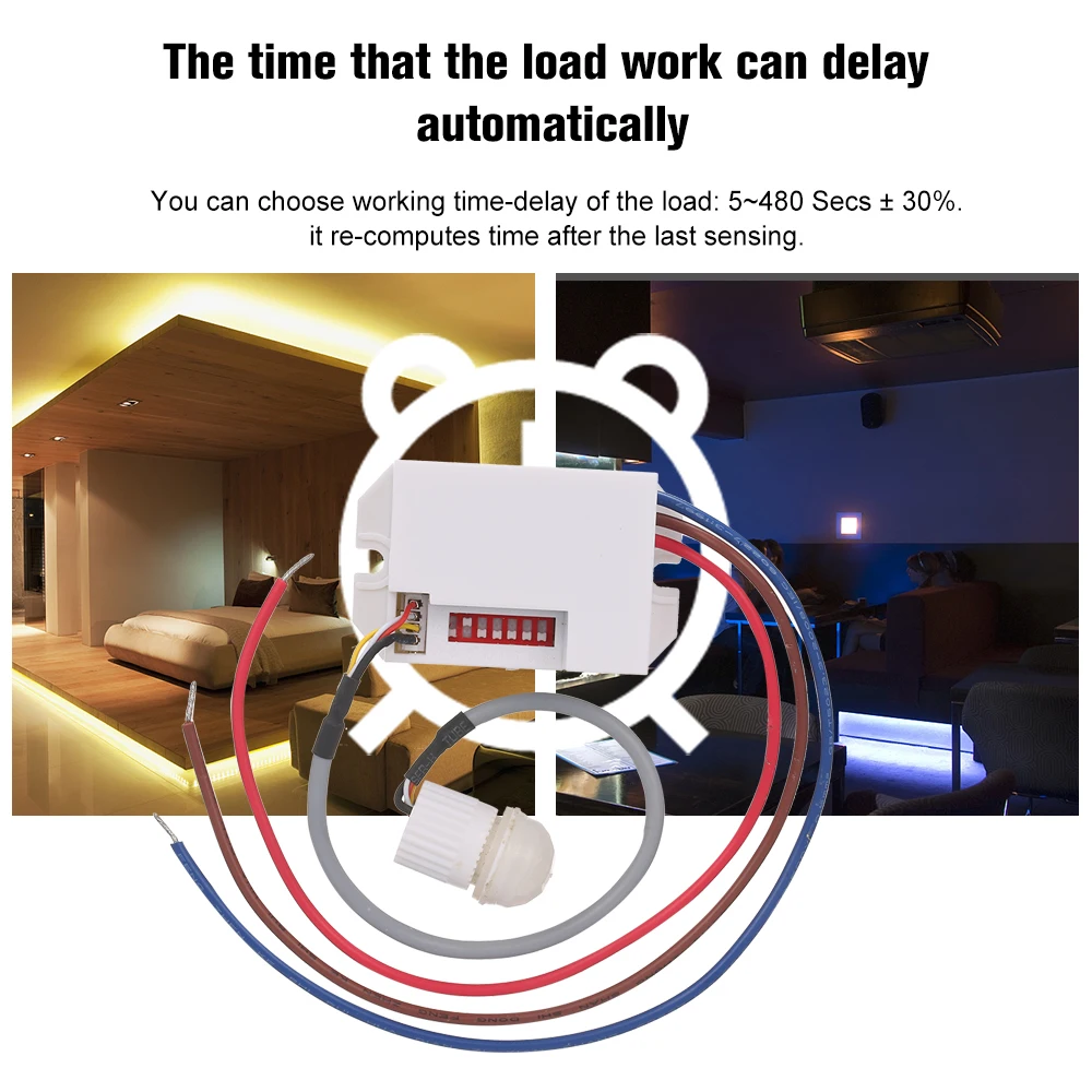 AC 220V Human Body Motion Induction PIR Infrared Sensor Switch Movement Detector Intelligent Automatic Light Switch Time Delay