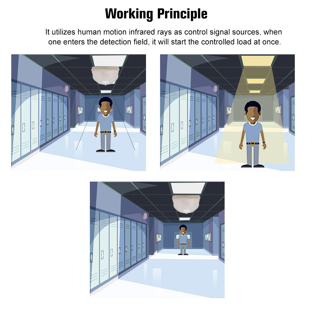 Automatic human body induction: automatic turn ON/OFF when detecting people come or left within the detection area.