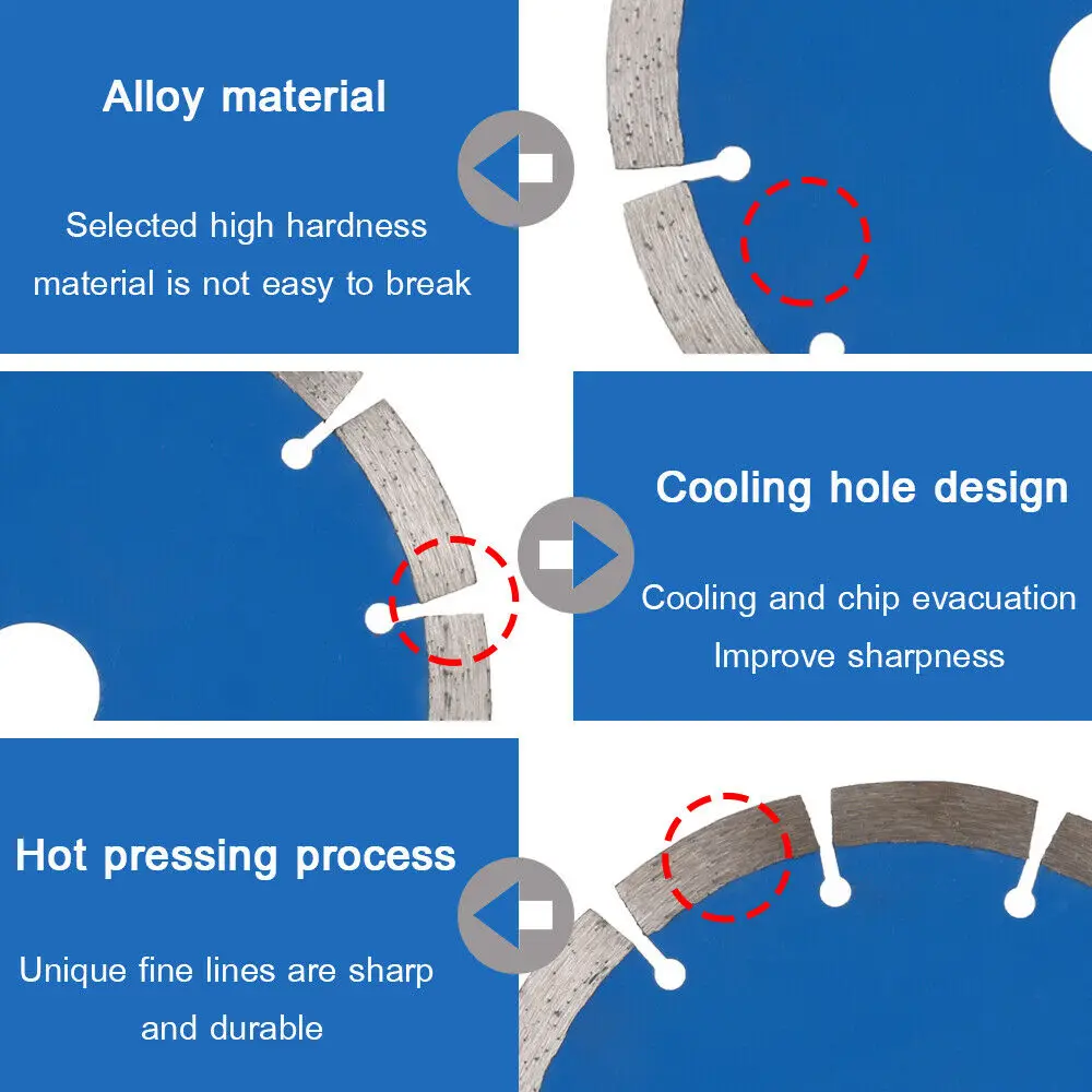 Особенности: 100% новый, высококачественный и никогда не монтируемый. Баланс резки, острый и прочный, долгий срок службы, очень острый, практичный и долговечный. Высококачественный алмазный песок, обработка горячим прессованием, Сухая резка, не пригорание, быстрая резка Конструкция охлаждающего отверстия, низкий уровень шума, хорошая теплоотдача, свободная эвакуация чипа улучшают остроту. Эффективно применяется для резки каменных материалов, керамики, плитки, гранита, резки твердых материалов и т. д. Спецификация: Цвет: как показано на фото Материал: алмазный песок Диаметр: 150 мм (6 ") Размер отверстия: 22,23 мм (7/8 ") (с внутренним кольцом 20 мм.) Ширина Керфа: 10 мм (Примечание: замеры сделаны вручную, поэтому возможны отклонения примерно на 0,5 мм, а также разница светильник цвете s, вызванная светильник экраном.) Посылка 1x алмазный отрезной диск Примечание: Пожалуйста, тщательно проверьте внешний вид, размер, форму товара, а затем сравните свои оригинальные товары перед заказом, спасибо. Светильник вая съемка и различные дисплеи могут привести к тому, что цвет товара на изображении немного отличается от реального. Поскольку размер выше измеряется вручную, размер предмета, который вы получили, может немного отличаться от вышеуказанного размера. Пожалуйста, не возражайте, спасибо!