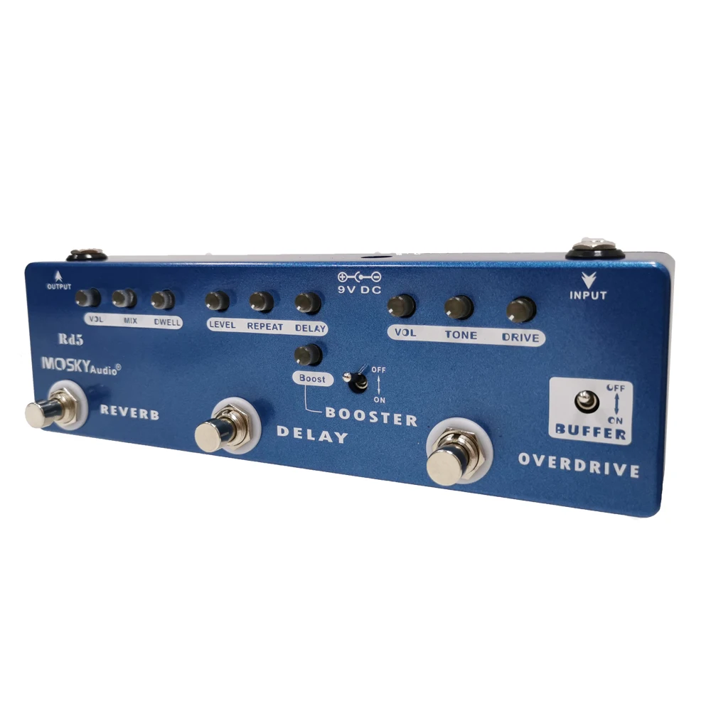 MOSKY RD5 5-in-1 гитарная многоэффектная педаль реверберации + задержка + усилитель + овердрайв + буфер полностью металлический корпус с настоящим байпасом