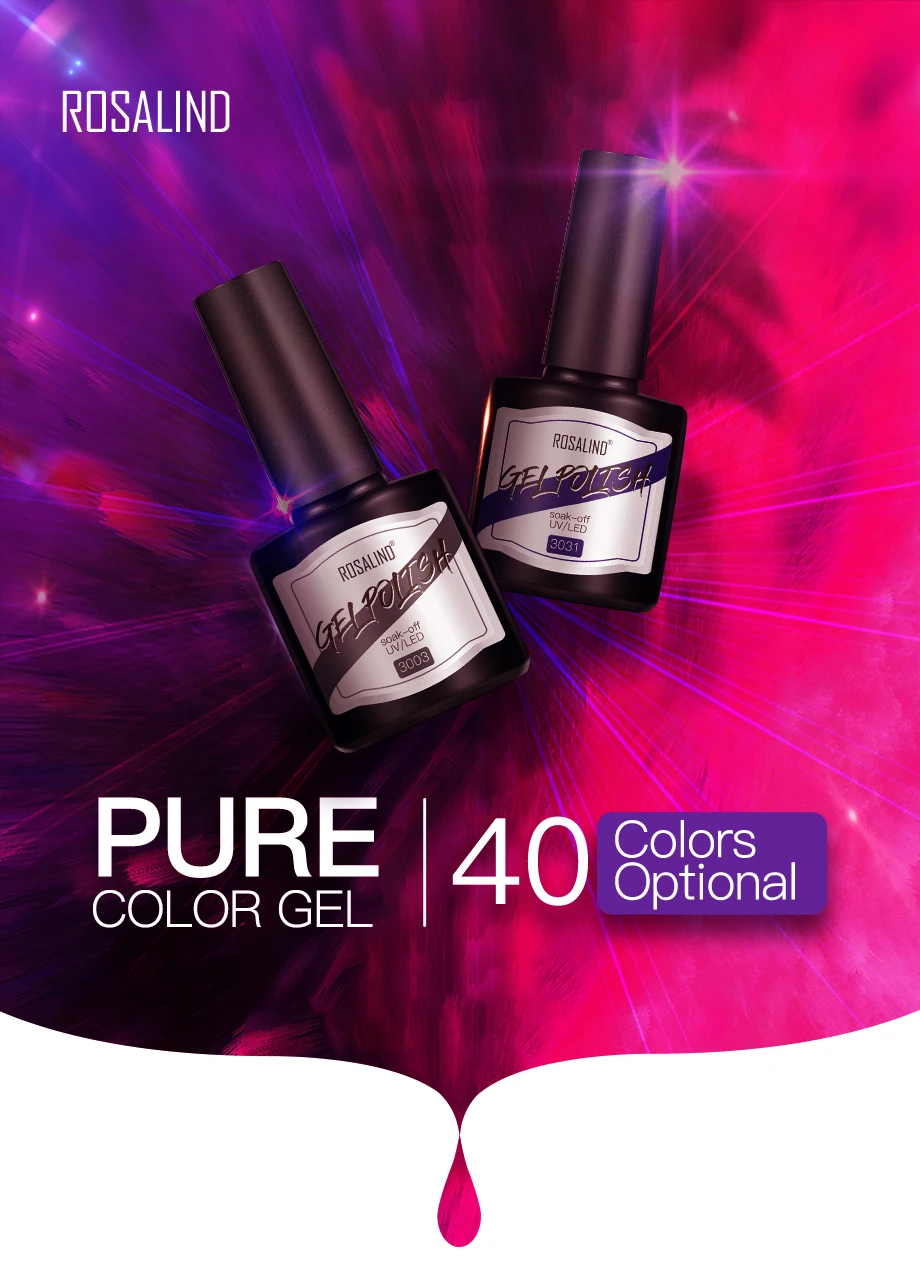 ROSALIND 8 мл отмачиваемый чистый цветной гель для ногтей яркий для дизайна ногтей светодиодный/УФ-лампа
