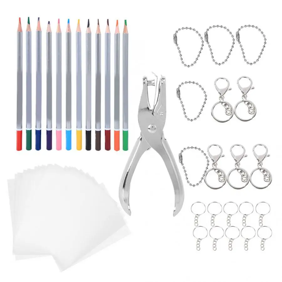 1 сумка брелок 1 упаковка маленькое кольцо для ключей 1 сумка Цепочка Из Бисера 1 х Дырокол 20 х термоусадочная пленка 1 коробка 12-Цвет s водорастворимый Цвет карандаши