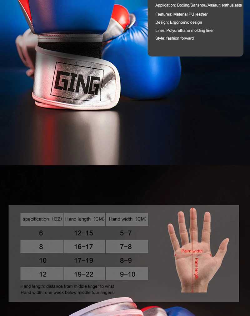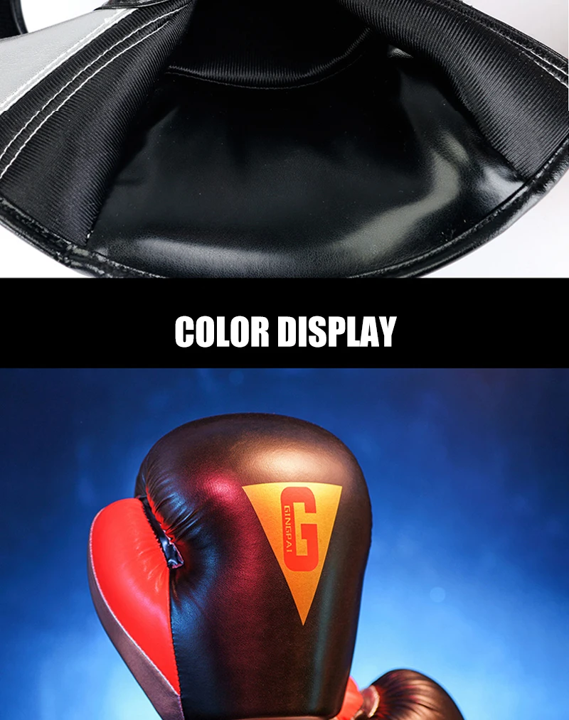 Размер: 8 унций 10 унций 12 унций Цвет: черный, красный, синий Особенности: Высокое качество из искусственной кожи, устойчив к поту, разлагается в течение длительного времени. Пена двойной плотности для увеличения поглощения штамповки и долговечной защиты рук Большой корпус на липучке с эластичной резинкой для идеальной защиты запястья Предварительно изогнутая анатомическая ручная конструкция Усиленная ладонь для повышенной безопасности с 100% прикрепленным большим пальцем Тест на пробивку 100 000 раз подходит для тренировок и спарринга Надежный бренд, оригинальная Заводская Продажа Мягкий и хорошо подходит для тренировок с тяжелой сумкой Для бокса, кикбоксинга, ММА, муай тай и т. Д.