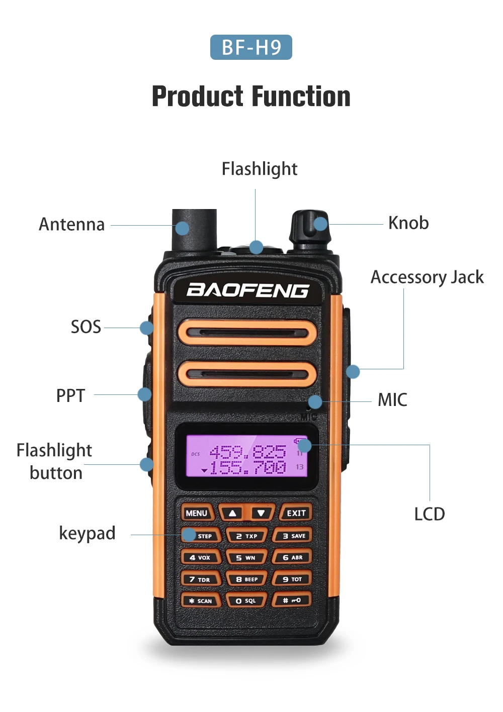 Трехдиапазонный радиоприемник BaoFeng UV-H9 Walkie Talkie 8 Вт Высокая мощность 136-174 МГц/220-260 МГц/400-480 МГц Ручной двухсторонний fm-приемопередатчик