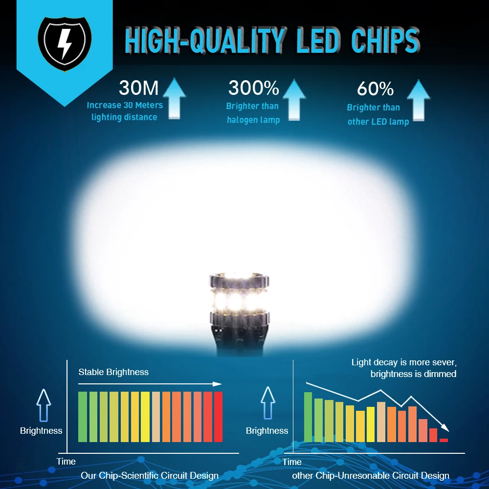 Высококачественный светодиодный чип, освещение на 360 градусов, широкий диапазон, более сфокусированный, более безопасное вождение.