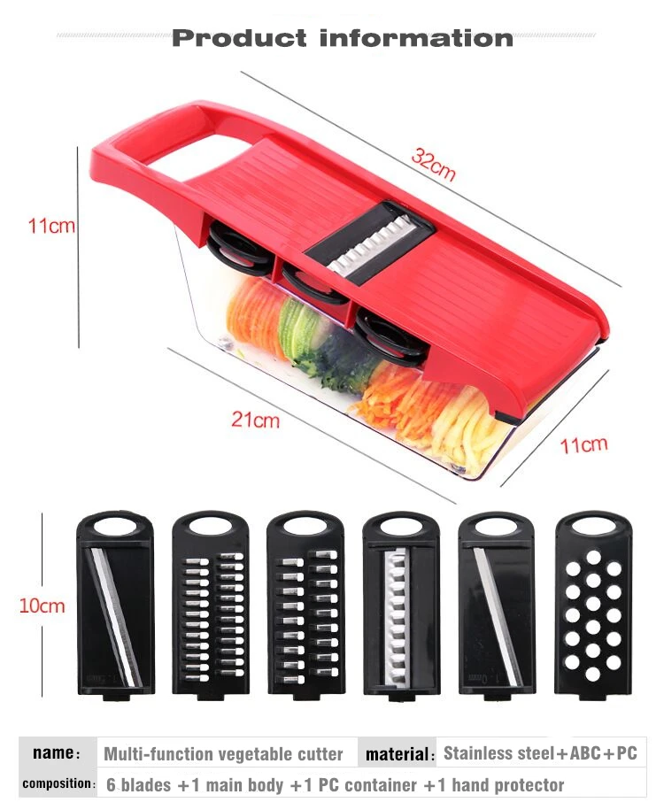 [Название продукта] Многофункциональный резак для овощей [Материал изделия] лезвие из АБС-пластика + 420/430 [Размер товара] 32х11, 5х10 см [Упаковка продукта] китайская/английская цветная коробка [Вес продукта] 500 г [Размеры цветной коробки] 32.5x12x10.5cm [Объем прозрачной коробки] 1л Примечание: 1. Допускается небольшая погрешность в размере из-за ручного измерения. 2. В связи с разной конфигурацией разных мониторов изображение не отображает фактический цвет товара. 3. Ваши отзывы очень важны для нас. Пожалуйста, нажмите 5 звезд в отзыве, если все идет хорошо. 4. Если у вас есть какие-либо проблемы, пожалуйста, свяжитесь с нами, прежде чем открыть спор или дать отрицательный отзыв, мы постараемся сделать все возможное, чтобы помочь вам, спасибо!