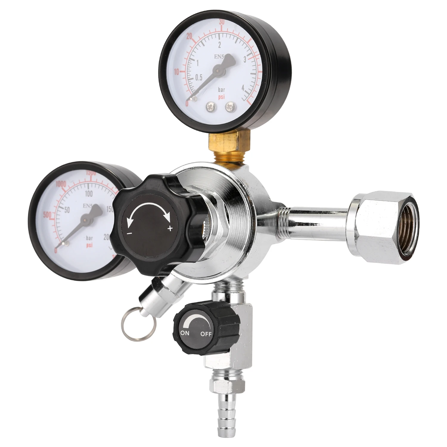 Это своего рода Регулятор СО2 для пива хорошего качества, двойные манометры обеспечивают максимальное удобство и долговечность в оживленных коммерческих условиях, таких как бары, дегустационные залы и рестораны. Один датчик позволяет узнать, сколько давления CO2 находится в бочке и отображает 0-60 psi. Второй Датчик позволяет узнать, сколько CO2 осталось внутри резервуаров CO2 и имеет дисплей 0-3000 PSI. Позволяет оптимизировать настройки для того, что вы распределяете. Вы можете попробовать.