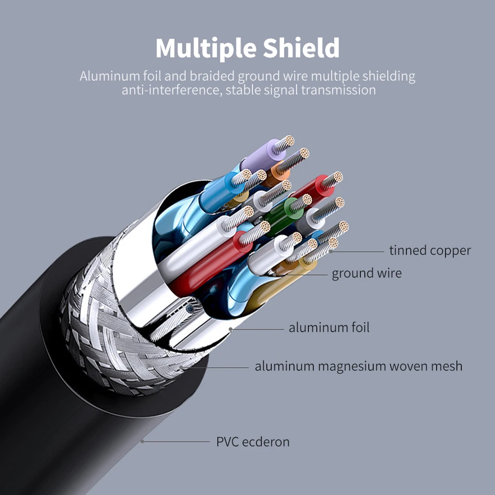 Алюминиевая фольга и Плетеный заземляющий провод многократное Экранирование от помех, стабильная передача сигнала.