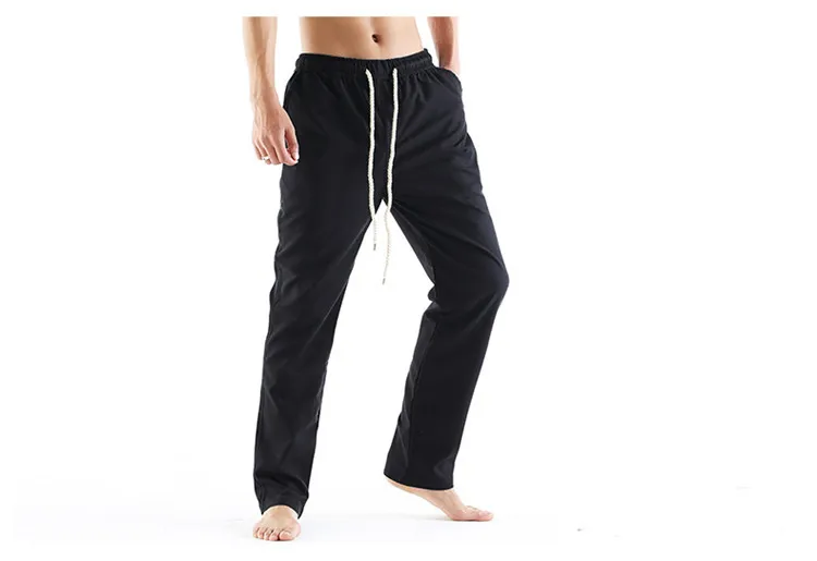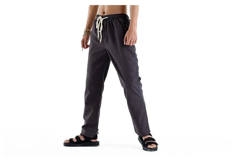 Льняные брюки, мужские тренировочные брюки, летние дышащие удобные мужские брюки, прямые повседневные джоггеры, уличная одежда, брюки размера плюс