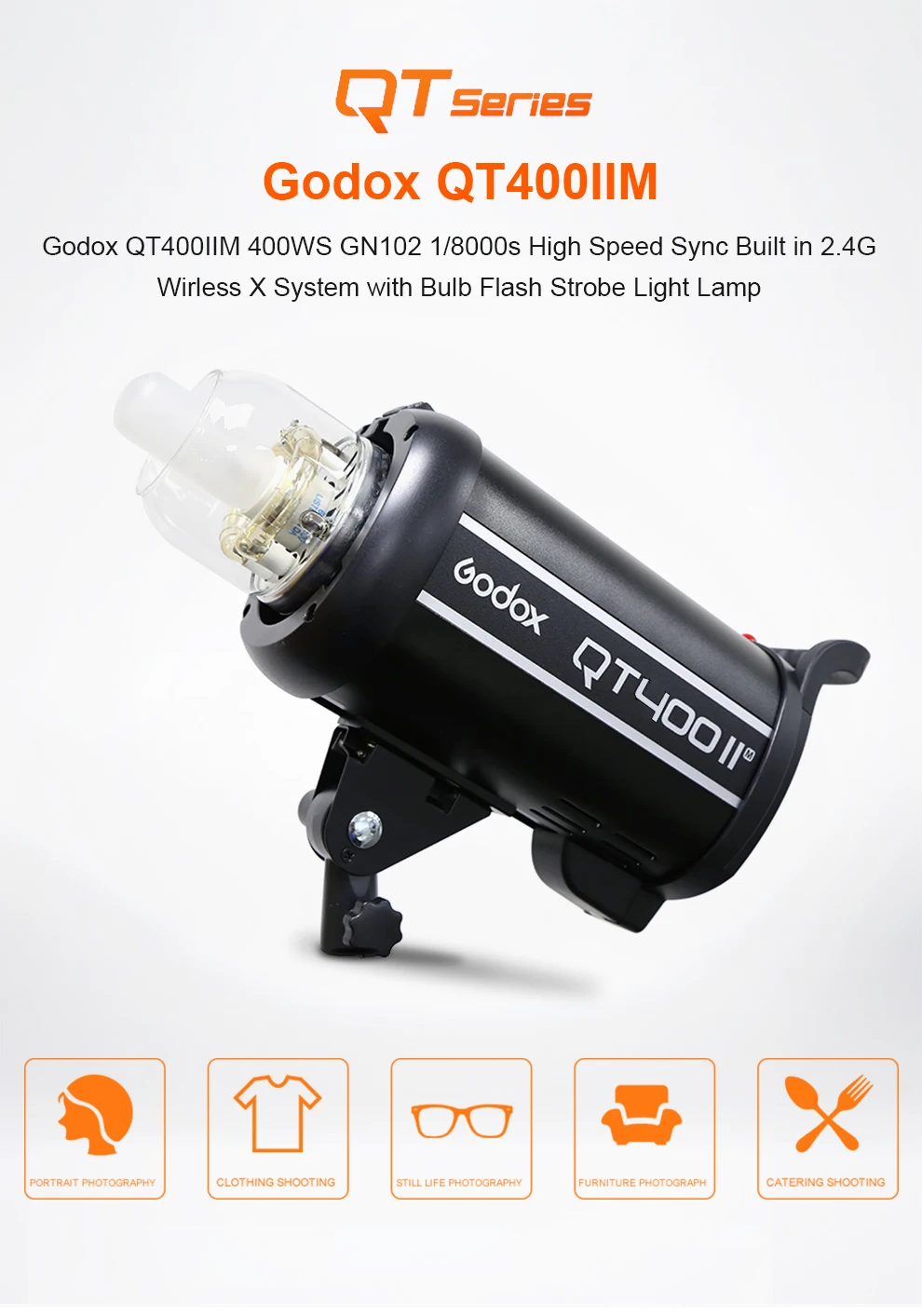 Высокоскоростной стробоскопический светильник Godox QT400II 400WS имеет комплексное обновление от первого поколения QT400 с изысканным дизайном, передовой техникой и множеством функций, благодаря встроенной беспроводной системе управления Godox 2,4G обеспечивает удобное Беспроводное управление и высокоскоростную вспышку, чтобы запечатлеть прекрасный момент.Беспроводное управление питанием и система запуска вспышки, полная поддержка высокоскоростной синхронизации 1/8000s, мульти вспышка, задержка вспышки, функция маски, S1/S2 оптический запуск, C.Fn Customfunction и т. Д.В качестве высокоскоростная студийная вспышка, QTII имеет 0,05-0,7 s очень быстро время перезарядки, 1/316-1/28984s ultra short Throw длительностью вспышки (t0.1) и более 10 непрерывных вспышек в секунду, захватывает все захватывающие моменты.Поддержка slave блок беспроводного управления Godox TTL flash, который Встроенный 2,4G беспроводной X1 системы, такие как: Godox TT685C TT685N TT685S V860IIC V860IIN V860IIS AD600BM AD600M AD360IIC AD360IIC вспышка, светильник он также беспроводной Запуск X1T-C, X1T-N, X1T-S Беспроводной TTL триггер передатчикТочная выходная мощность и удобная работа, выход от полной мощности 1/1 до 1/128 за 20 шагов. Оснащен модельной лампой 150 Вт и прозрачной ЖК-панелью. Светильник с яркостью моделирующей лампы: 5%-100%