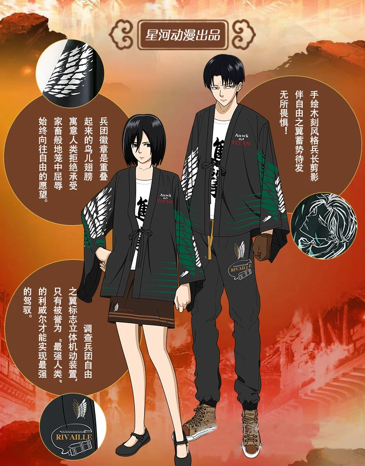 Костюм атака на Титанов плащ печень, набор Mikasa Ackerman Перо: шифоновая ткань, один размер-маленький размер, подходит для роста около 150-170 см, большой размер подходит для роста около 170-190 см Брюки: трикотажная ткань, S-XXL, 5 размеров, могут носить мужчины и женщины ростом 155-185 см Парусиновая обувь: 36-44 стандартный китайский Размер