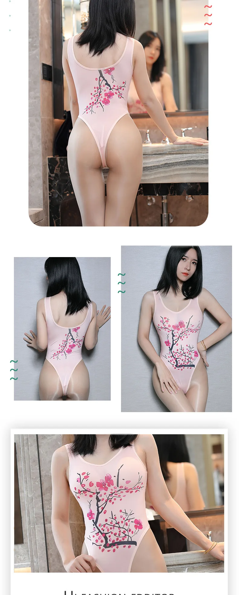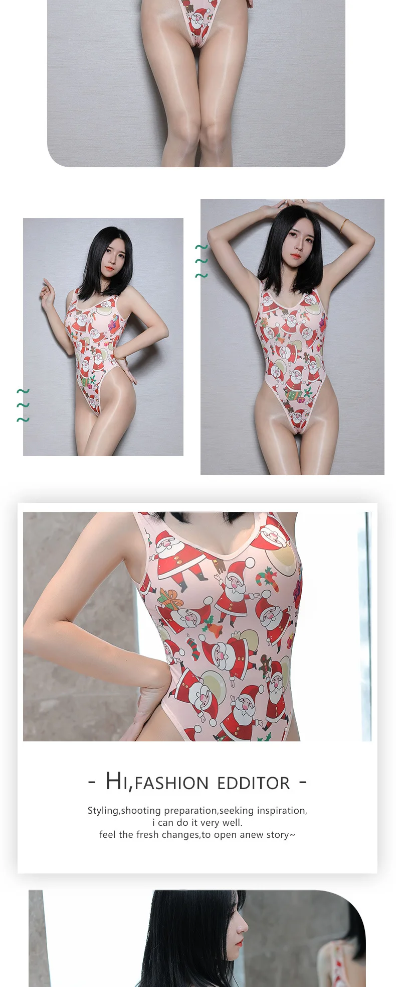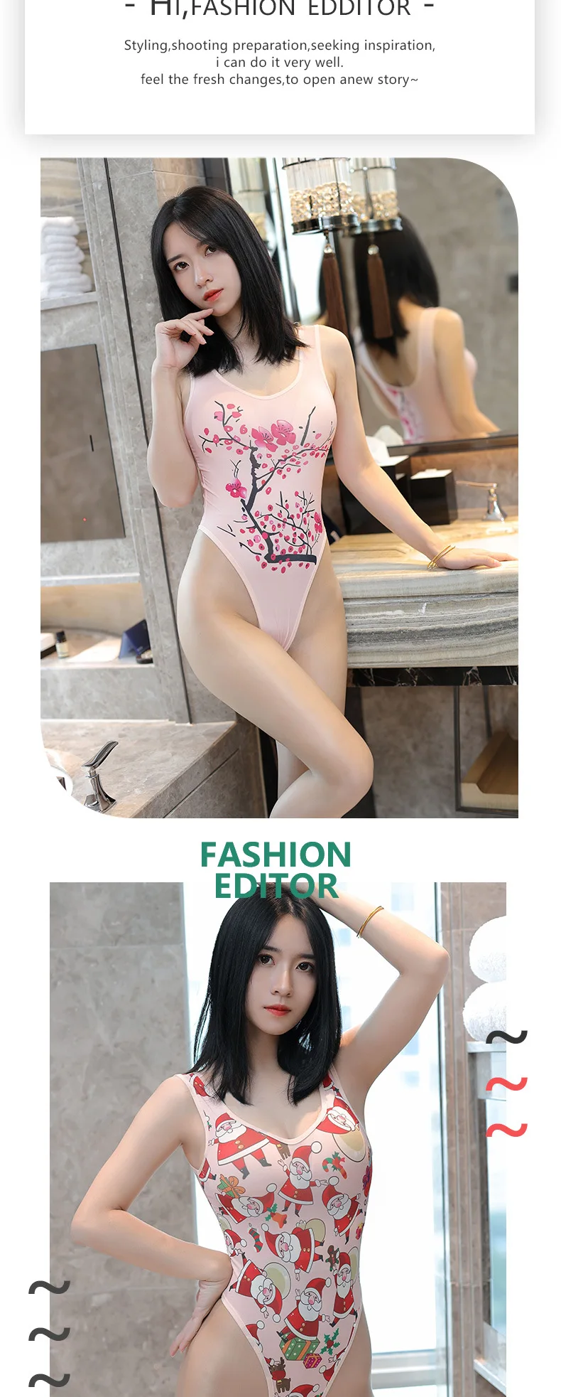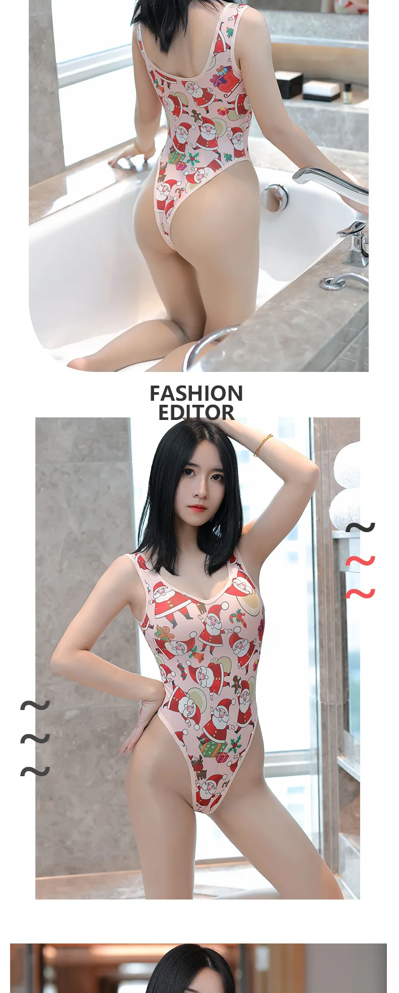 Сексуальный женский костюм Санта-Клауса с высоким вырезом, плотный Цельный купальник с милым мультяшным рисунком, тонкое мягкое эластичное сексуальное женское белье