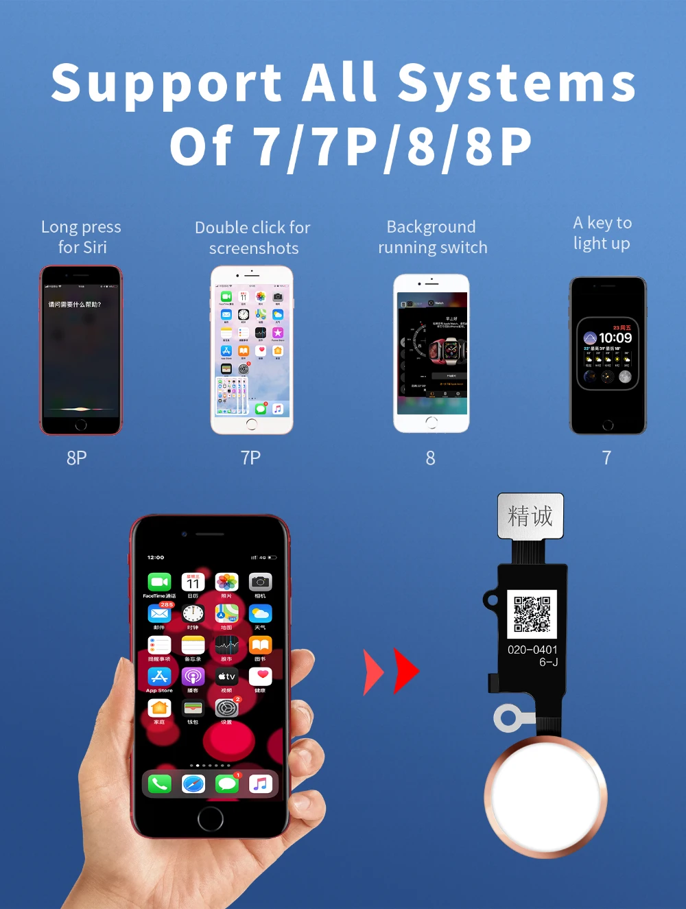 Кнопка JC 6 Gen home для iphone 7/7 plus/8/8 plus, кнопка для задней панели экрана, может использоваться с JC v1s для совместной работы