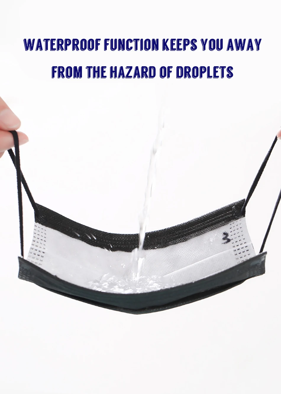 Этот продукт-черная одноразовая трехслойная Нетканая маска для ушей. Каждая деталь упакована отдельно. Внутренний слой-приятная для кожи Нетканая ткань, средний слой-фильтрующий элемент расплава, высокоэффективный в блокировании бактериальных капель, внешний слой из водонепроницаемого нетканого материала. Независимая упаковка может предотвратить вторичное загрязнение и провести более удобную очистку.