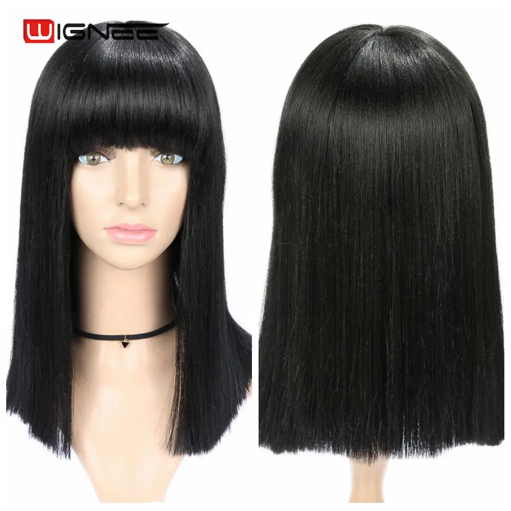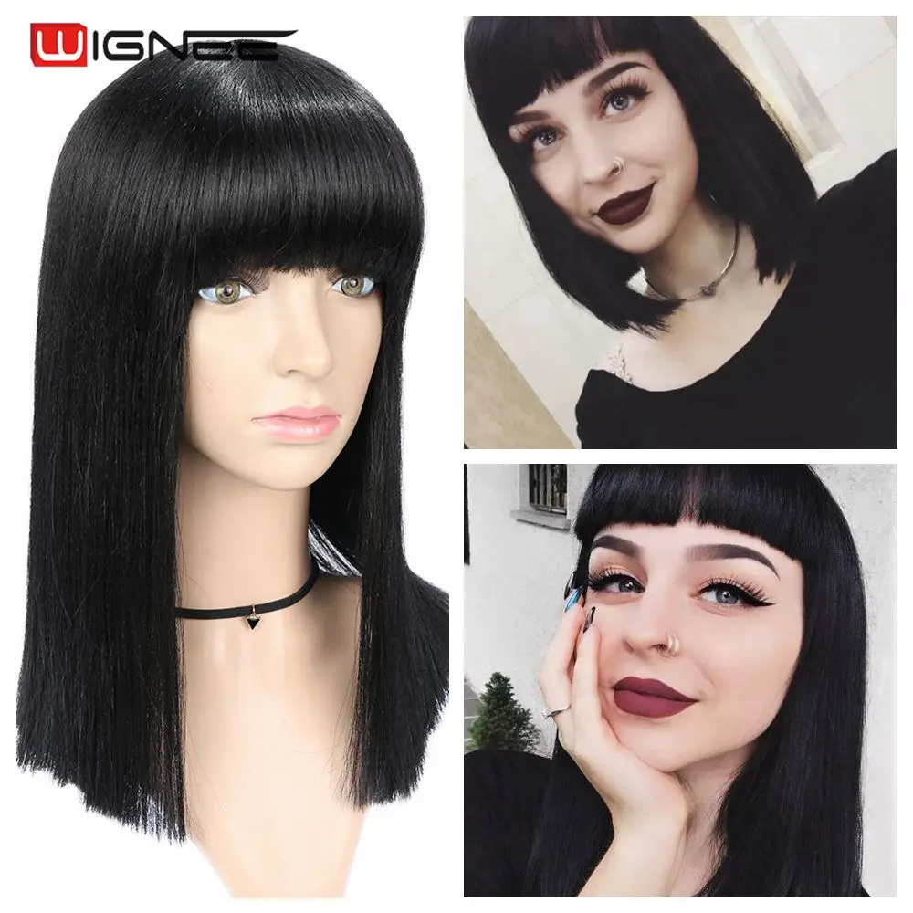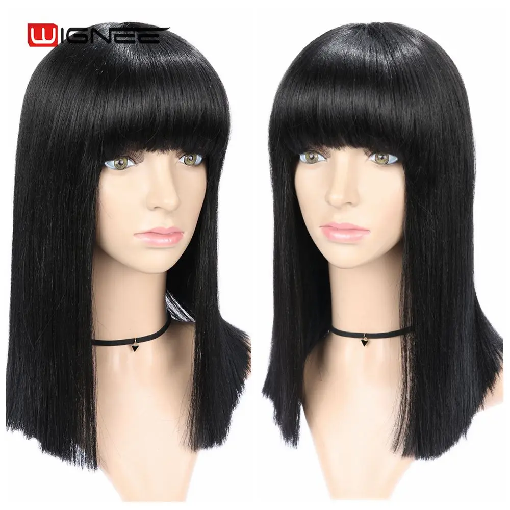 Wignee длинные черные прямые термостойкие синтетические парики для черных и белых женщин с челкой натуральные повседневные/парики из натуральных волос для вечеринки