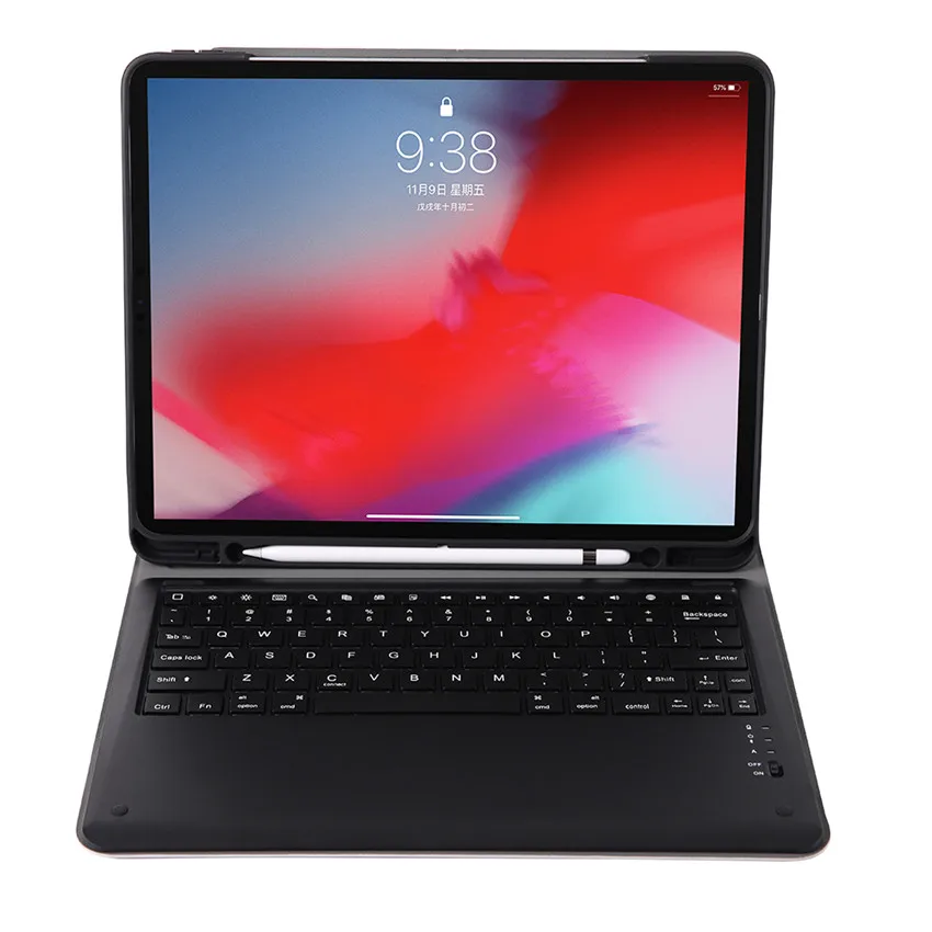 Название продукта: чехол для клавиатуры Bluetooth Модель продукта: A12B 2020 Применимые модели: iPad 12,9 дюймов 2020 версия 1: стандартное Bluetooth решение 3,0 2: эффективное расстояние 10 метров 3: Время в режиме ожидания: 100 дней 4: непрерывное рабочее время: 70 часов 5: Время зарядки: 4-5 часов 6: емкость литиевой батареи: 200mha 7: срок службы литиевой батареи: 3 года 8: срок службы ключа: 500 миллионов раз чехол из ТПУ со слотом для ручки 9: Доступные цвета: черный/золотой/темно-синий/розовое золото Размер продукта: 28,5*24,2*2 см Цвет Размер коробки: 31*24,5*2,5 см Вес одной посылка: 1017 г Один без упаковки вес: 945 г