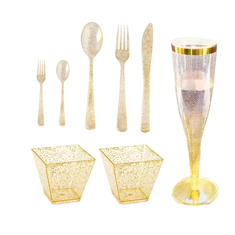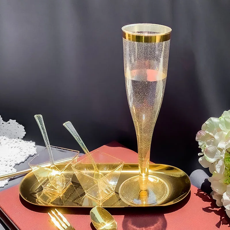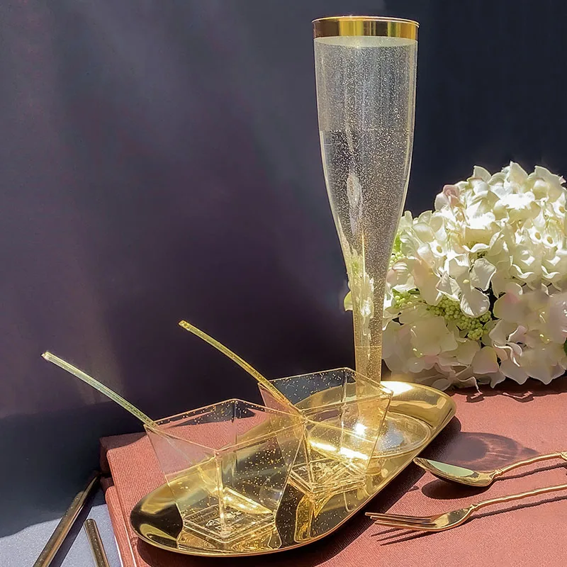 Золотой пластиковый Кубок в оправе, Одноразовая чашка для пудинга, Свадебная вечеринка, набор посуды, Золотой блестящий розовый столовый инструмент в западном стиле
